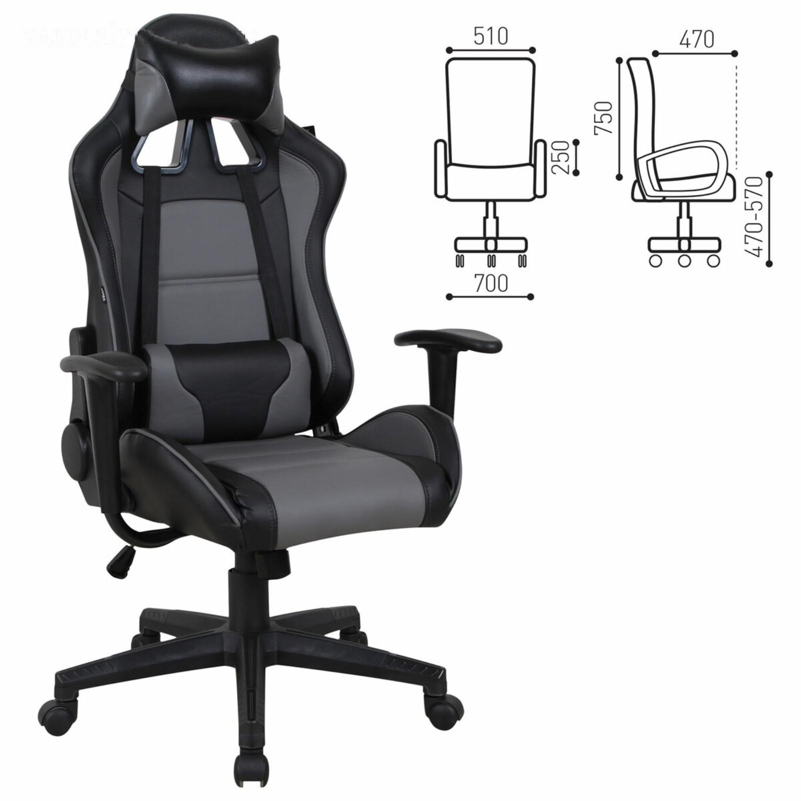 Кресло игровое BRABIX "GT Racer GM-100", две подушки, экокожа, черное/серое, 531926