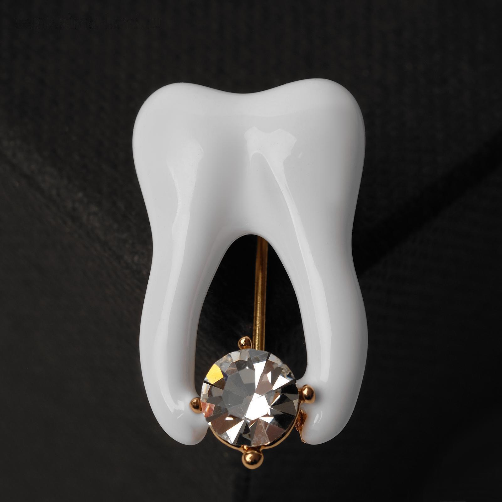 Брошь "Зуб" со стразой, цвет белый в золоте