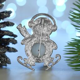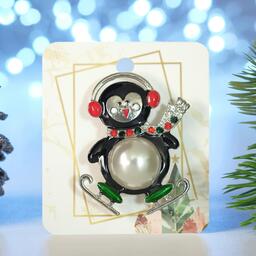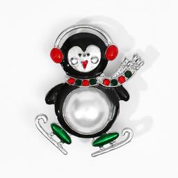 Брошь "Пингвин танцующий", цветная в серебре
