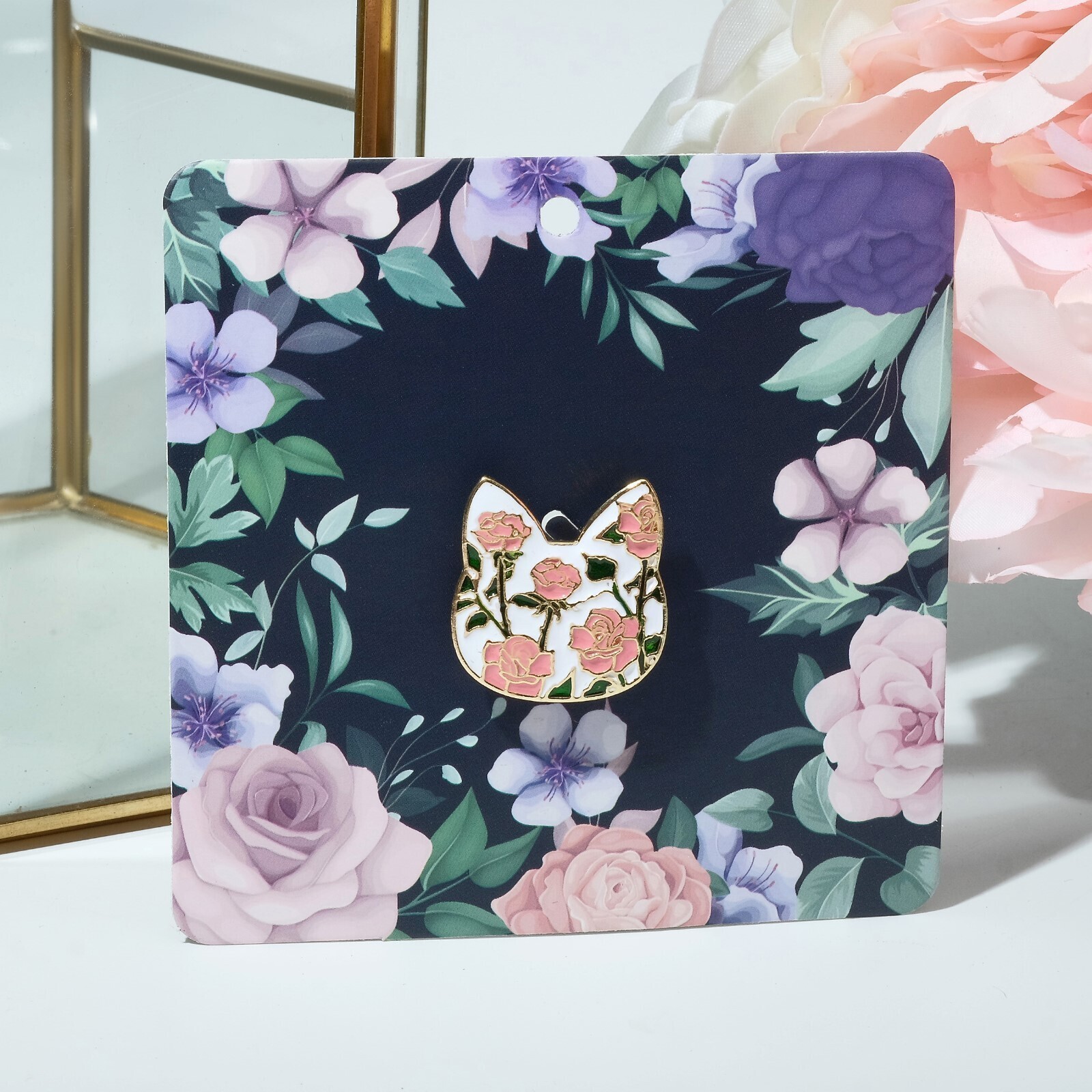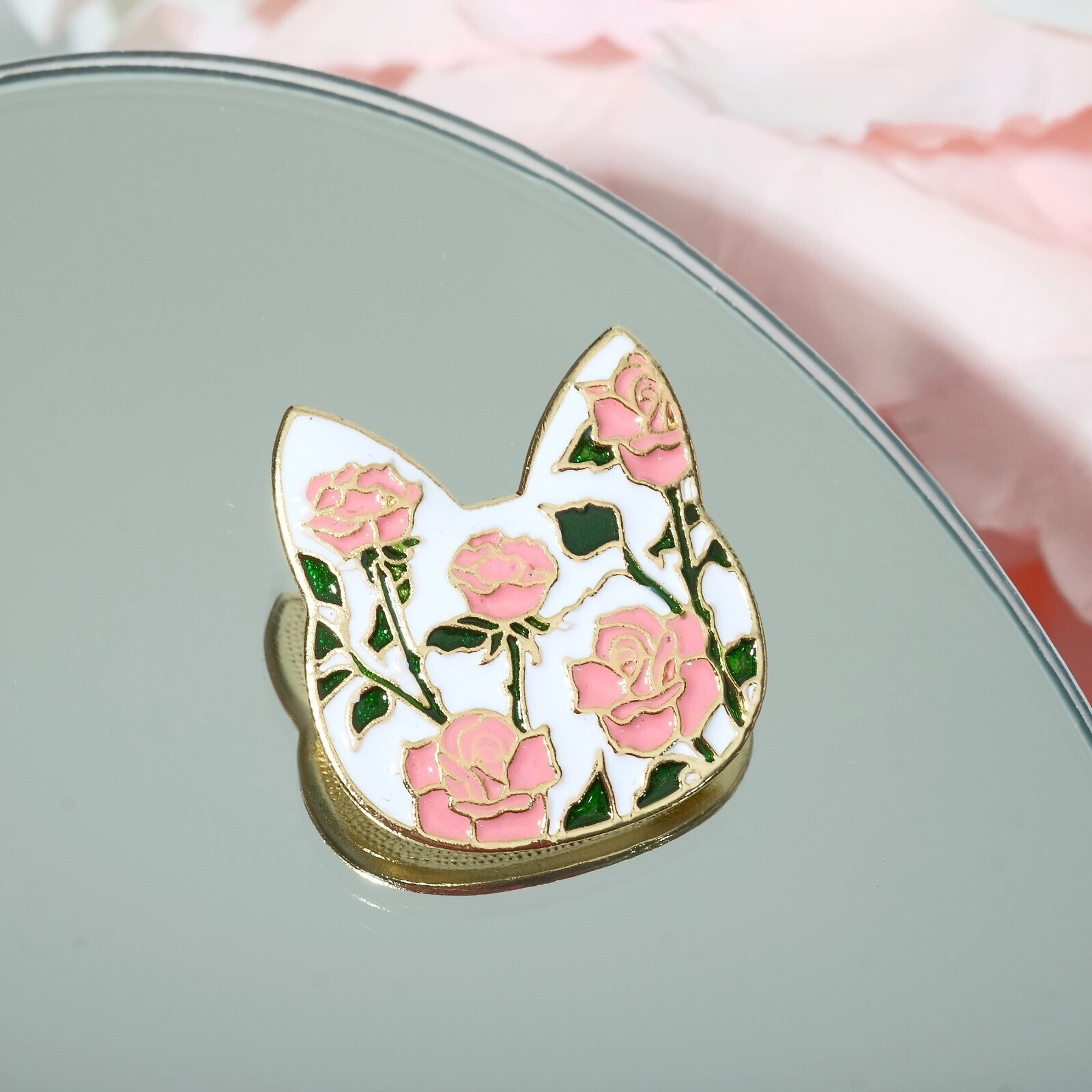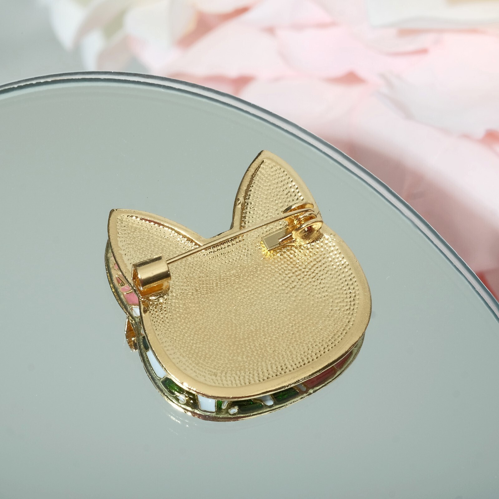 Брошь "Кошечка" цветочный узор, цветная в золоте