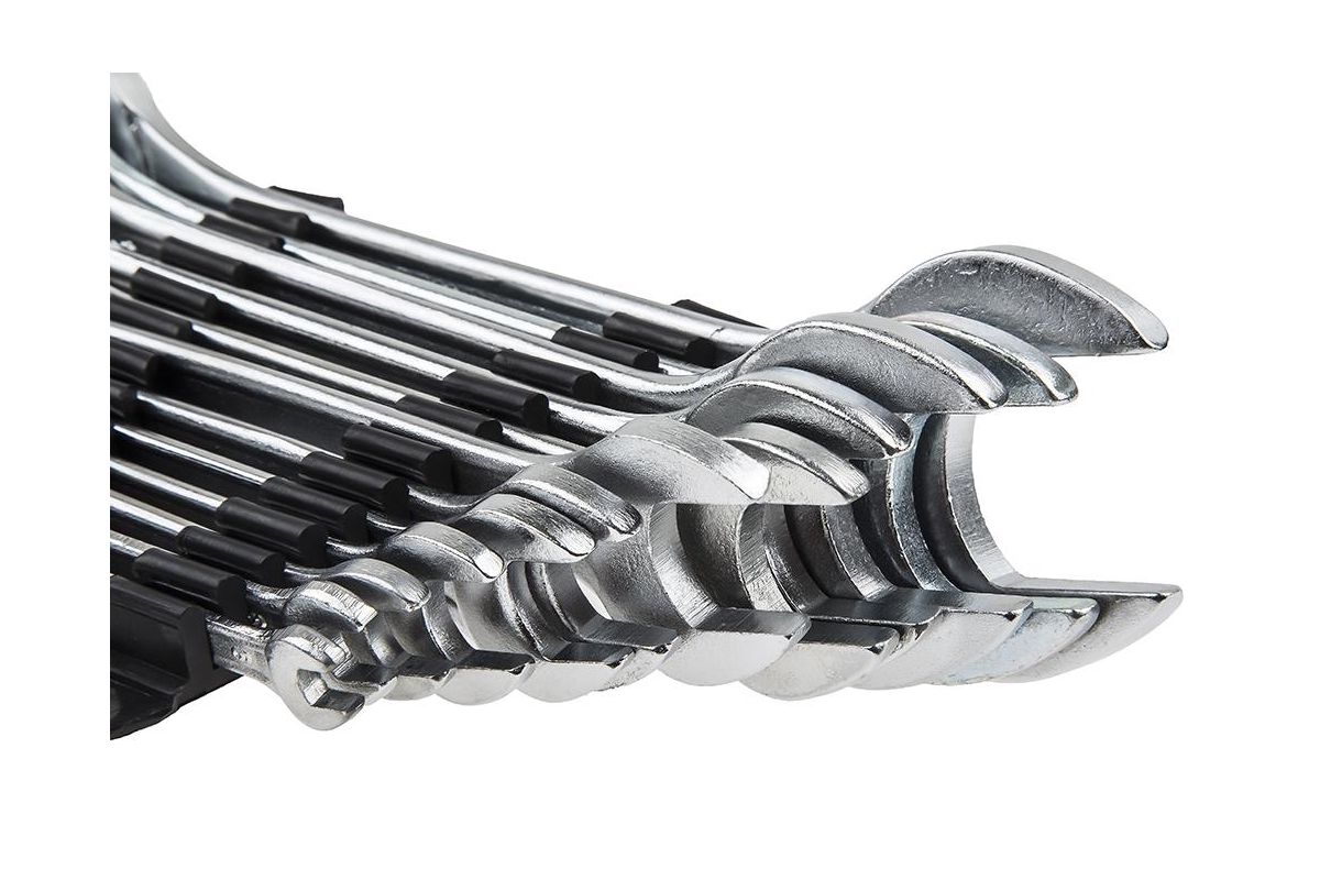 Ключи изготовлены из углеродистой стали. Твердость материала рабочей части 42 HRc (требования ГОСТ – 41–46 HRc). Имеют надежное защитное покрытие из хрома. Упакованы в полиэтилен. Ключи гаечные двусторонние с открытым зевом предназначены для монтажа демонтажа резьбовых соединений.