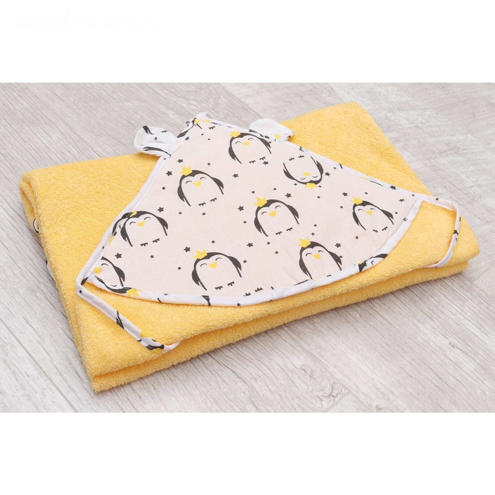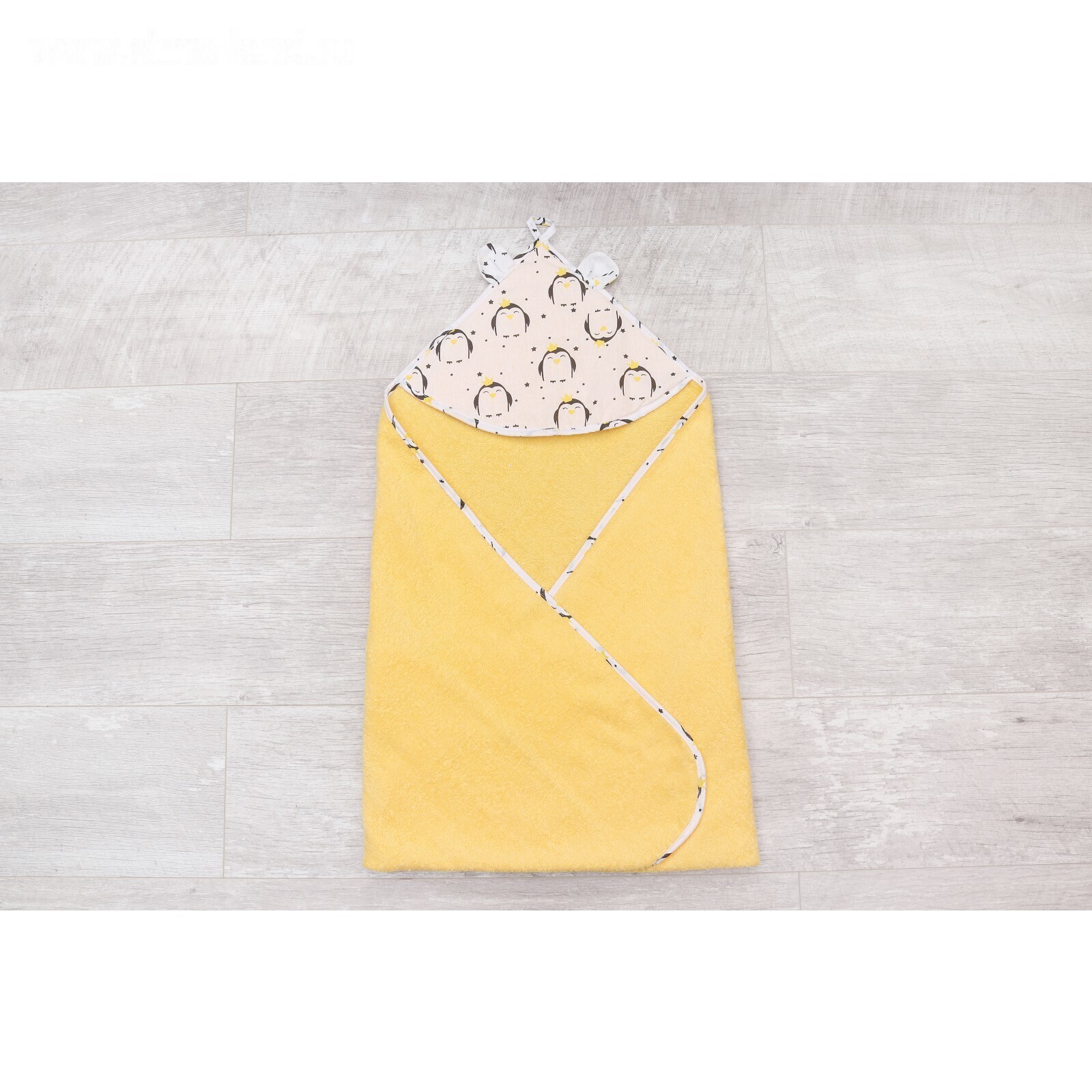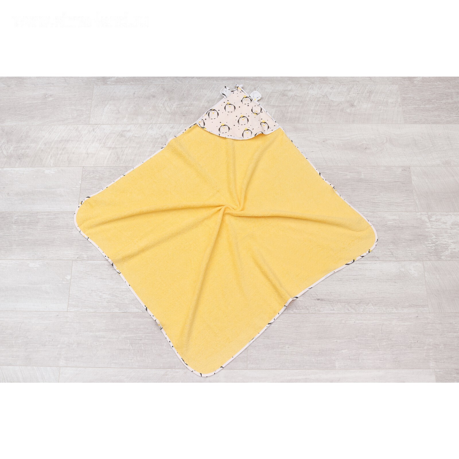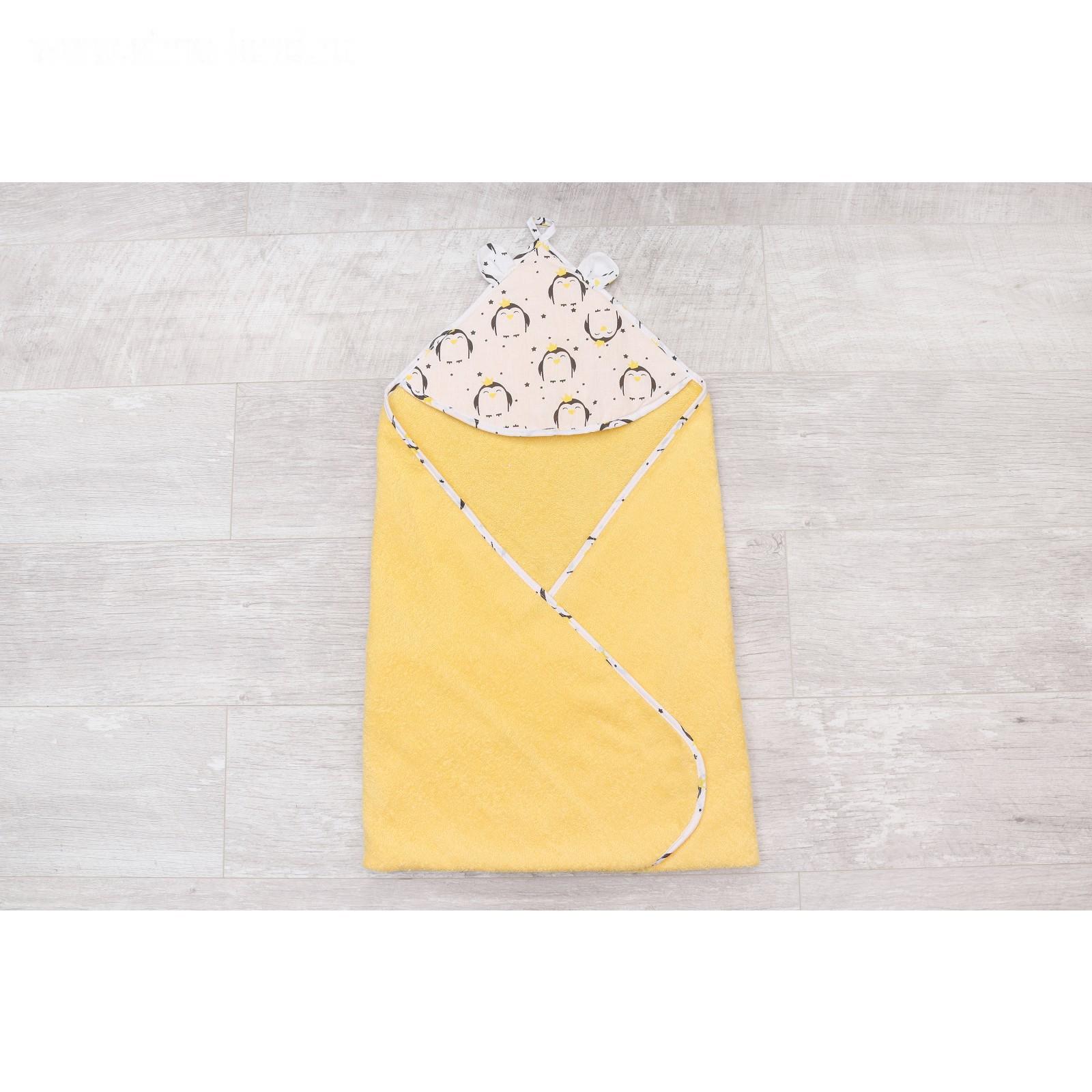 Полотенце-уголок Cute love, размер 90 × 90 см, принт пингвины, цвет жёлтый