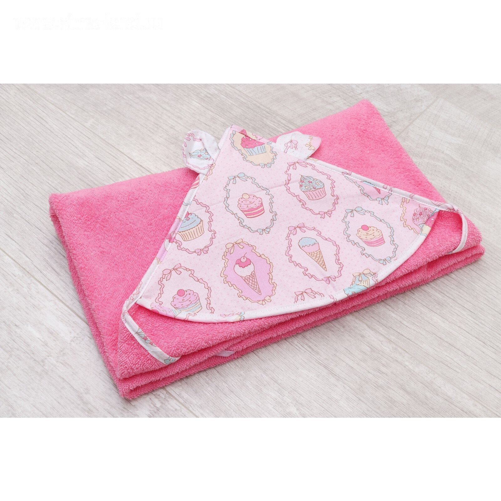 Полотенце-уголок Cute love, размер 90 × 90 см, принт пироженки, цвет розовый