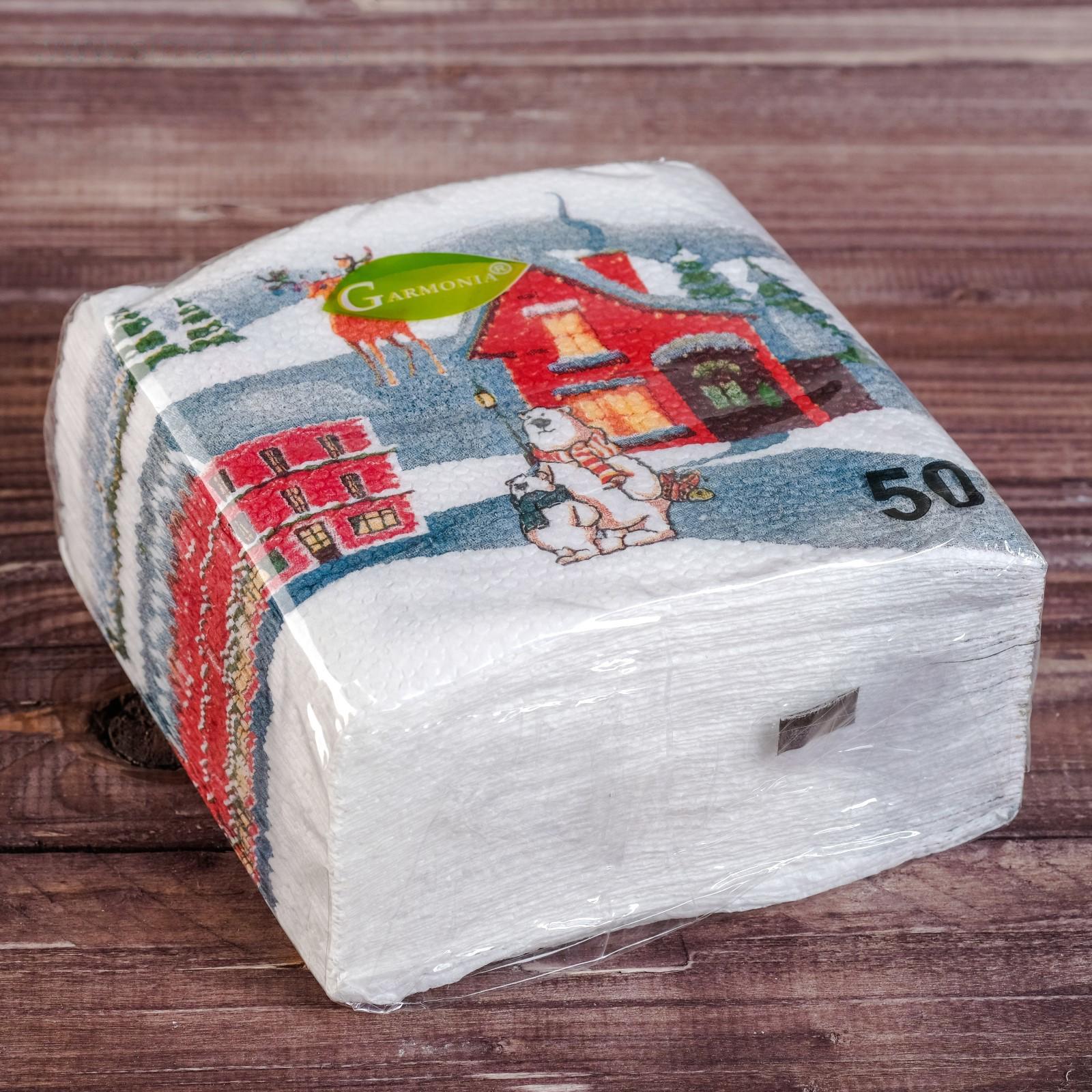 Новогодние Новогодние салфетки бумажные "Гармония цвета многоцветие. Домики", 24*24 см, 50 листов