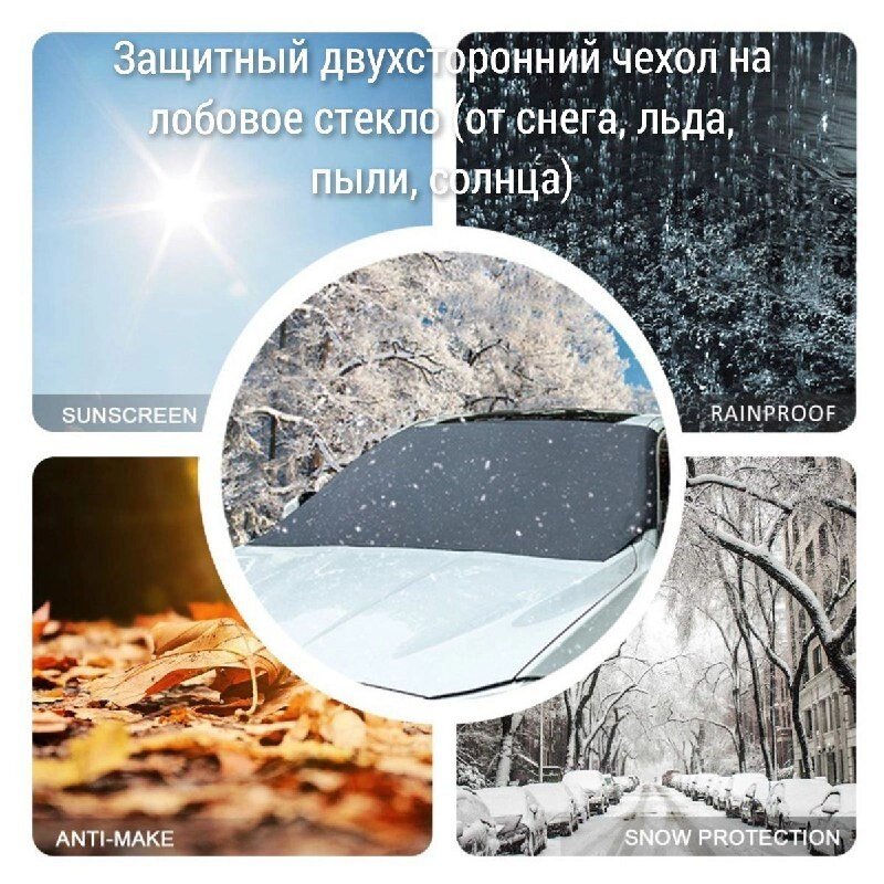 Защитный двухсторонний чехол / накидка с присосками на лобовое стекло Winter Windshield Cover 140 х 70 см (размер L)