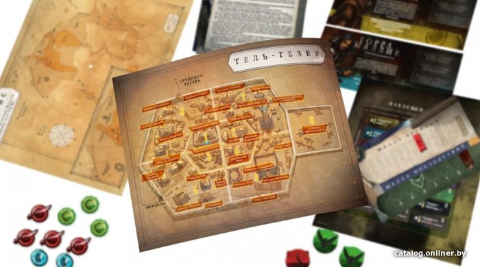 - Комплектация • 96 карт встреч• введение пролога• введения глав (3 шт.)• маркер последствий• маркер времени• игровое поле• 5 жетонов последствий• 27 жетонов• лист с наклейками навыков• 4 планшета персонажей• карта Дюны• карта Тель-Гезера• правила