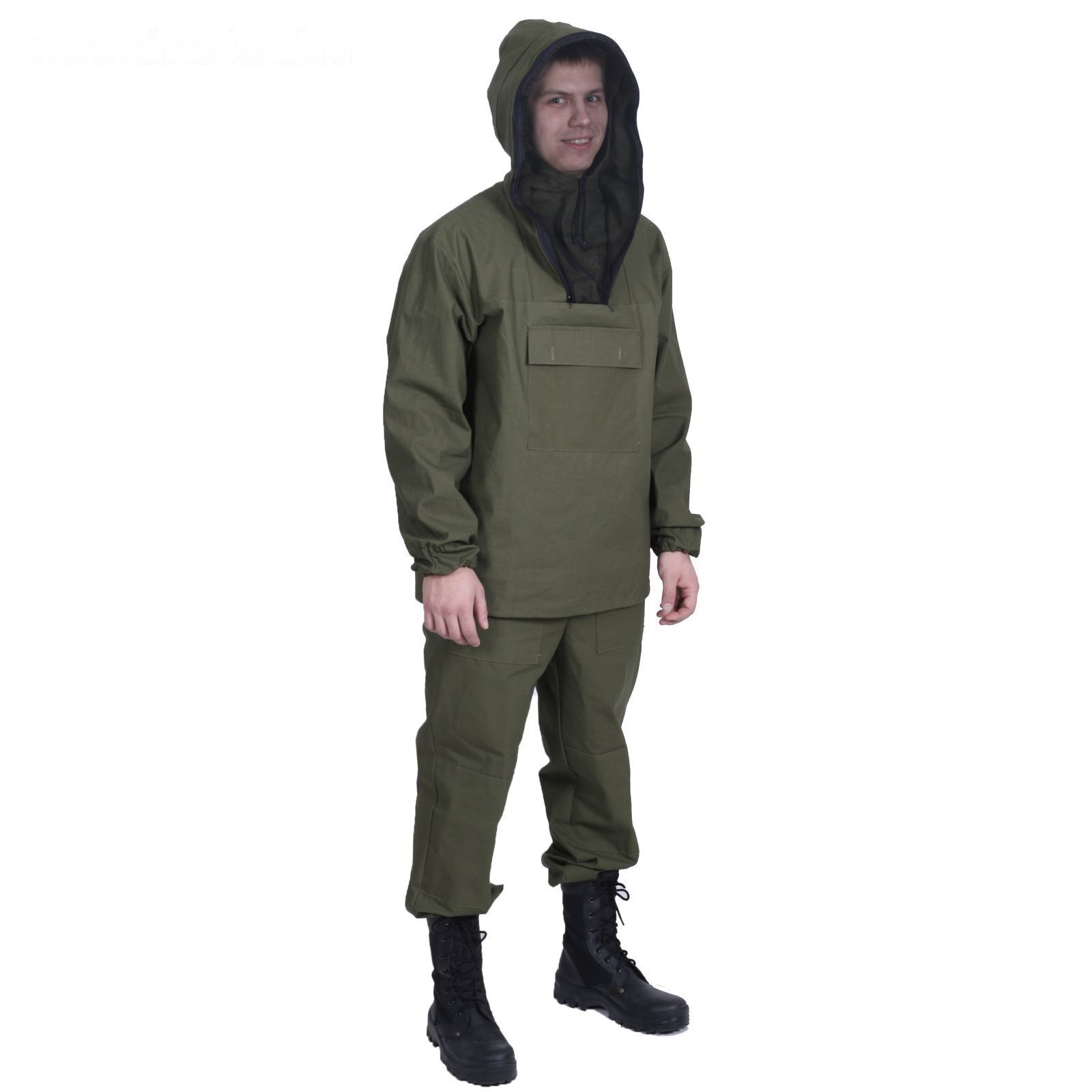 Противоэнцефалитный костюм с москитной сеткой состоит из брюк и куртки с капюшоном.