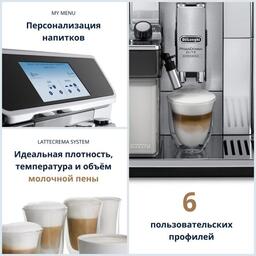 • Регулировка высота чашеккрепость напиткамолочная пенаобъем порциистепень помолатемпература