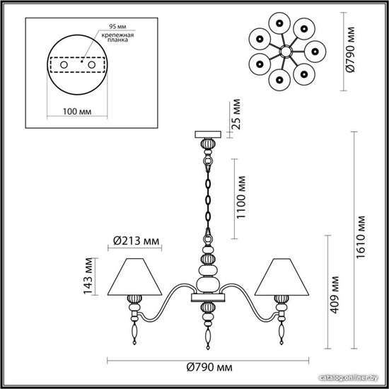 • Цвет плафонов, абажура белый