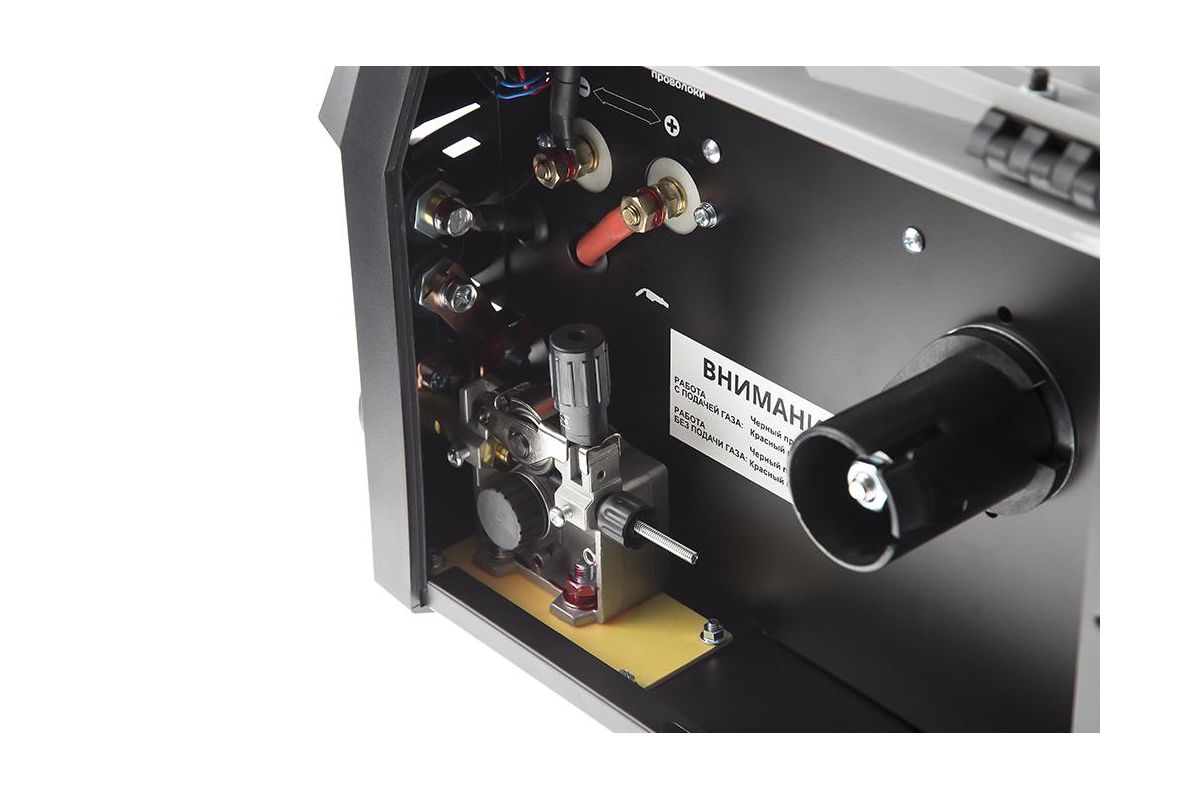 Устройство широко применяется на строительной площадке, в частном хозяйстве, в гараже и т.д. Модель имеет простую и понятную панель управления со световыми индикаторами и регуляторами скорости подачи проволоки и сварочного тока.