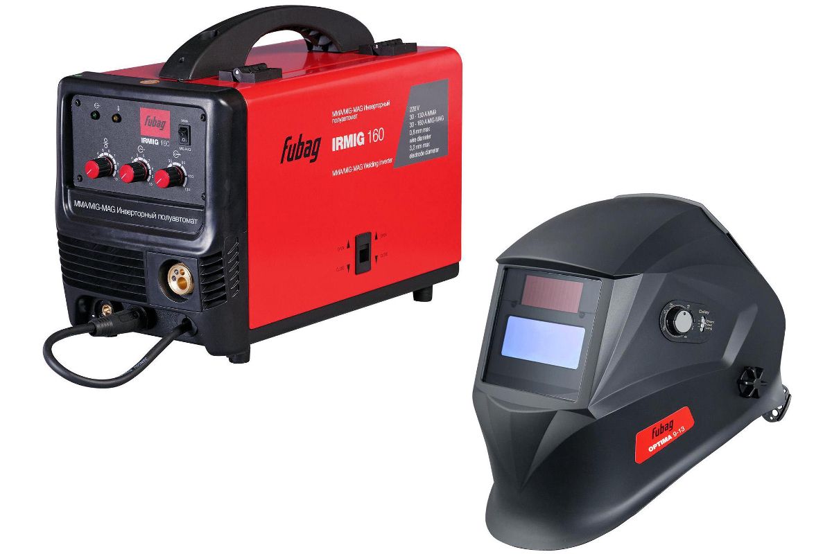 В состав набора входят: Сварочный полуавтомат FUBAG IRMIG 160 38607 + горелка FB 150 3 м инвертор, Сварочная маска FUBAG OPTIMA 9 – 13 ''хамелеон''