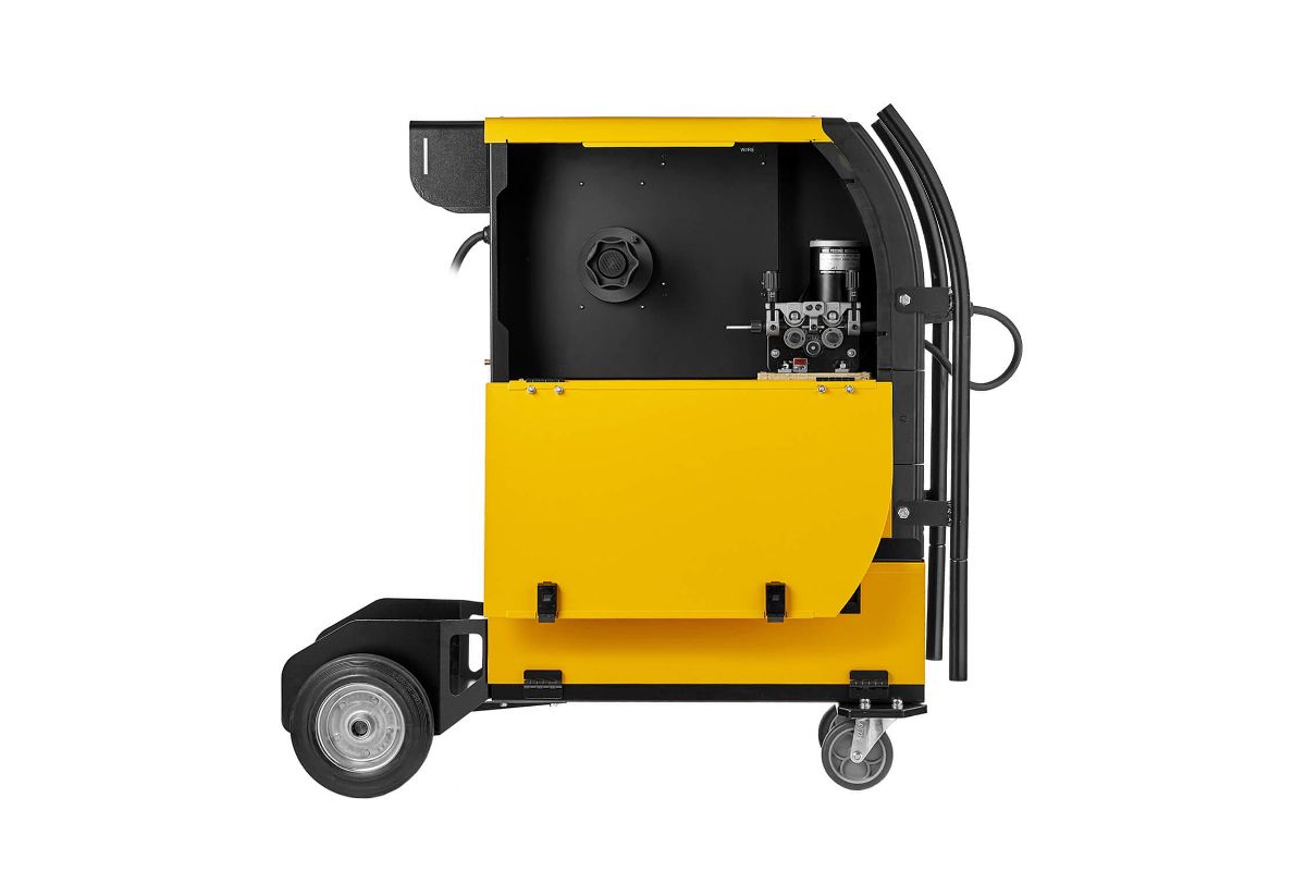 - 4-х роликовый металлический механизм подачи проволоки. Используется сварочная проволока диаметром от 0,8 до 1,2 мм. Возможно установить катушку с проволокой весом до 15 кг и регулировать скорость подачи проволоки от 2 до 15 м/мин.