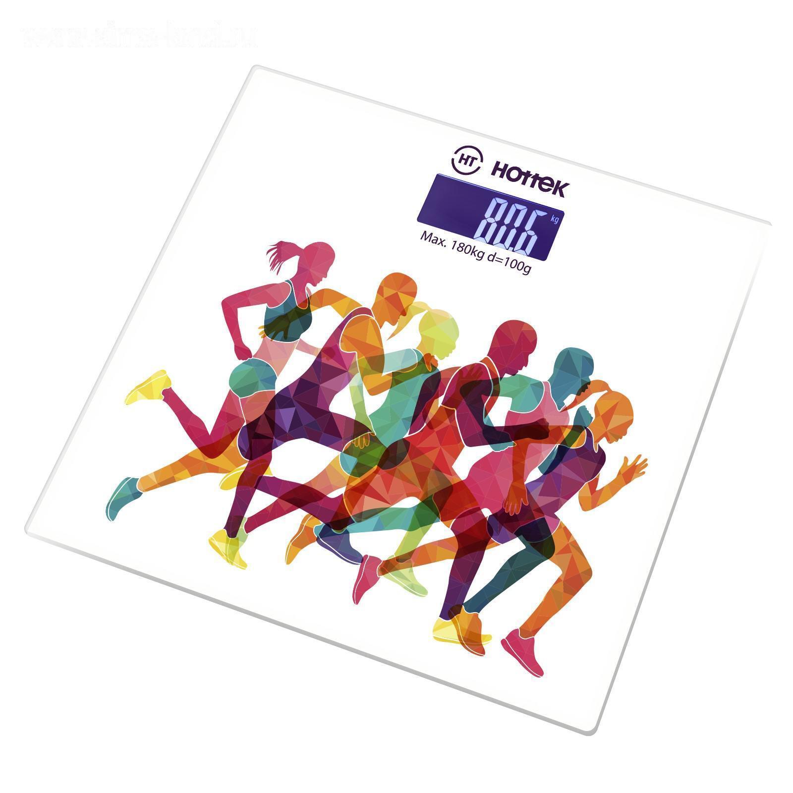 Весы напольные HOTTEK HT-962-014, электронные, до 180 кг, 1хCR2032, стекло, рисунок "бегуны"