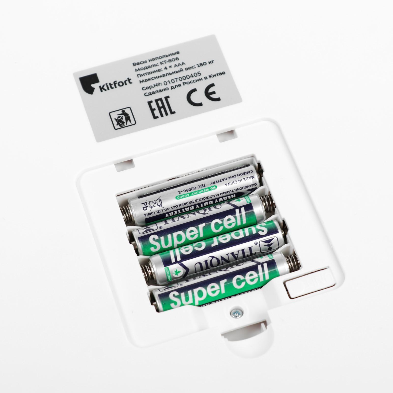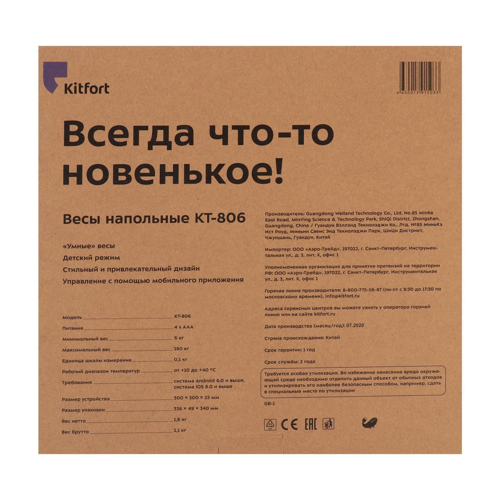 Весы напольные Kitfort КТ-806, электронные, до 180 кг, Bluetooth, 4хААА, черные