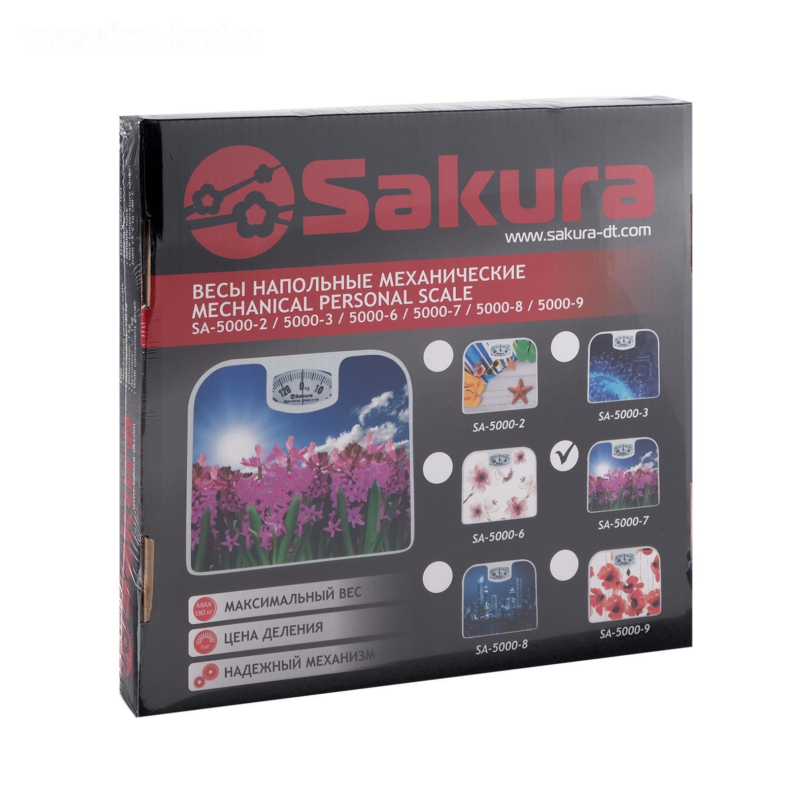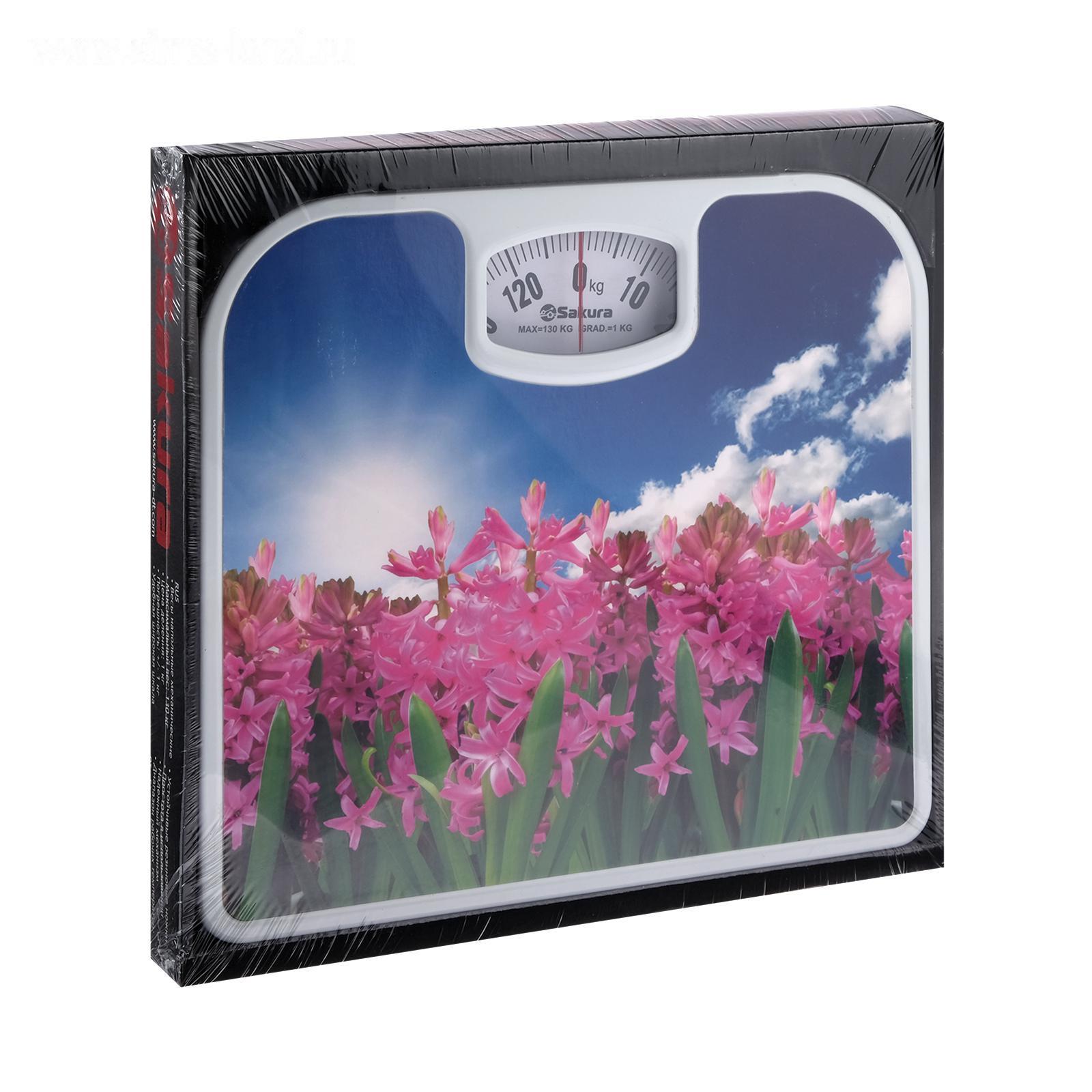 Весы напольные Sakura SA-5000-7, механические, до 130 кг, картинка "гиацинты"