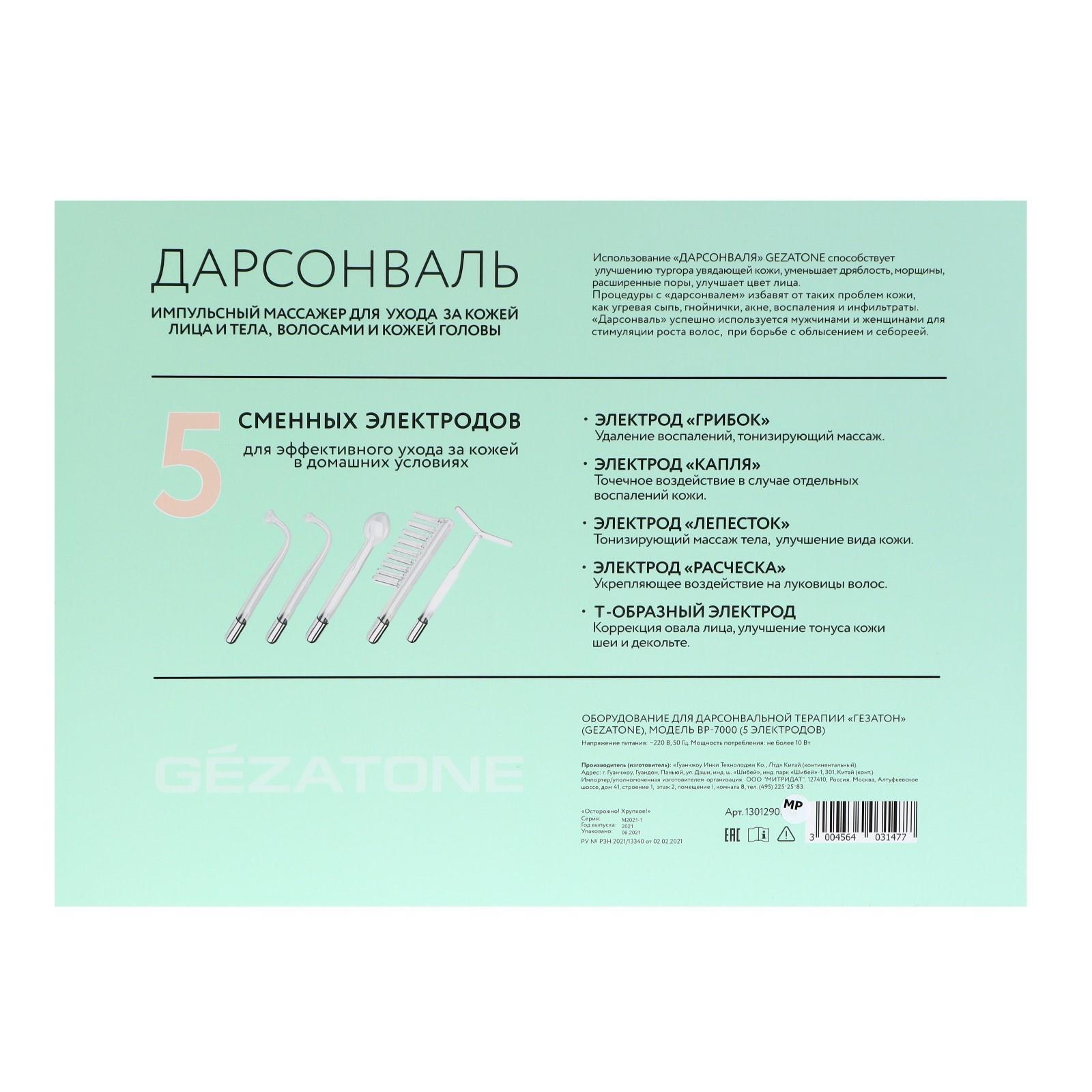Медицинский дарсонваль Gezatone ВР7000 станет прекрасным подарком себе, близким, друзьям, поможет сохранить красоту и здоровье, сэкономить на косметологах и физиотерапевтах.