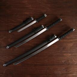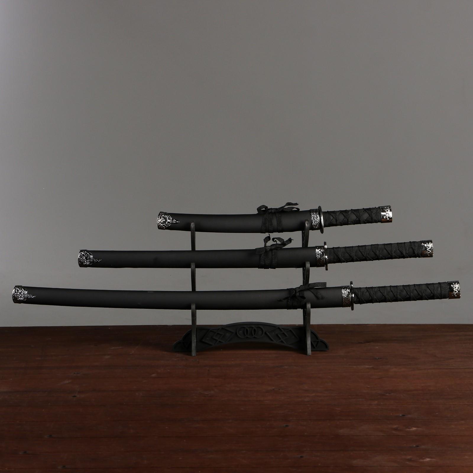 Сув. изделие катаны 3в1 на подставке, ножны кожзам, черная 47/70/89см