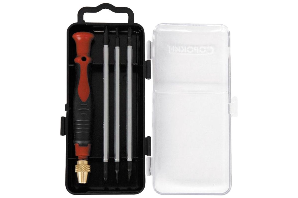 Набор отверток СОРОКИН 1.489 применяется для монтажа и демонтажа мелких крепежей, имеющих крестовую и шлицевую головку. Благодаря двухсторонним сменным насадкам и удобному адаптеру с обрезиненной рукояткой, вращаемым упором и надежным фиксатором насадок работа выполняется точно, аккуратно и быстро.