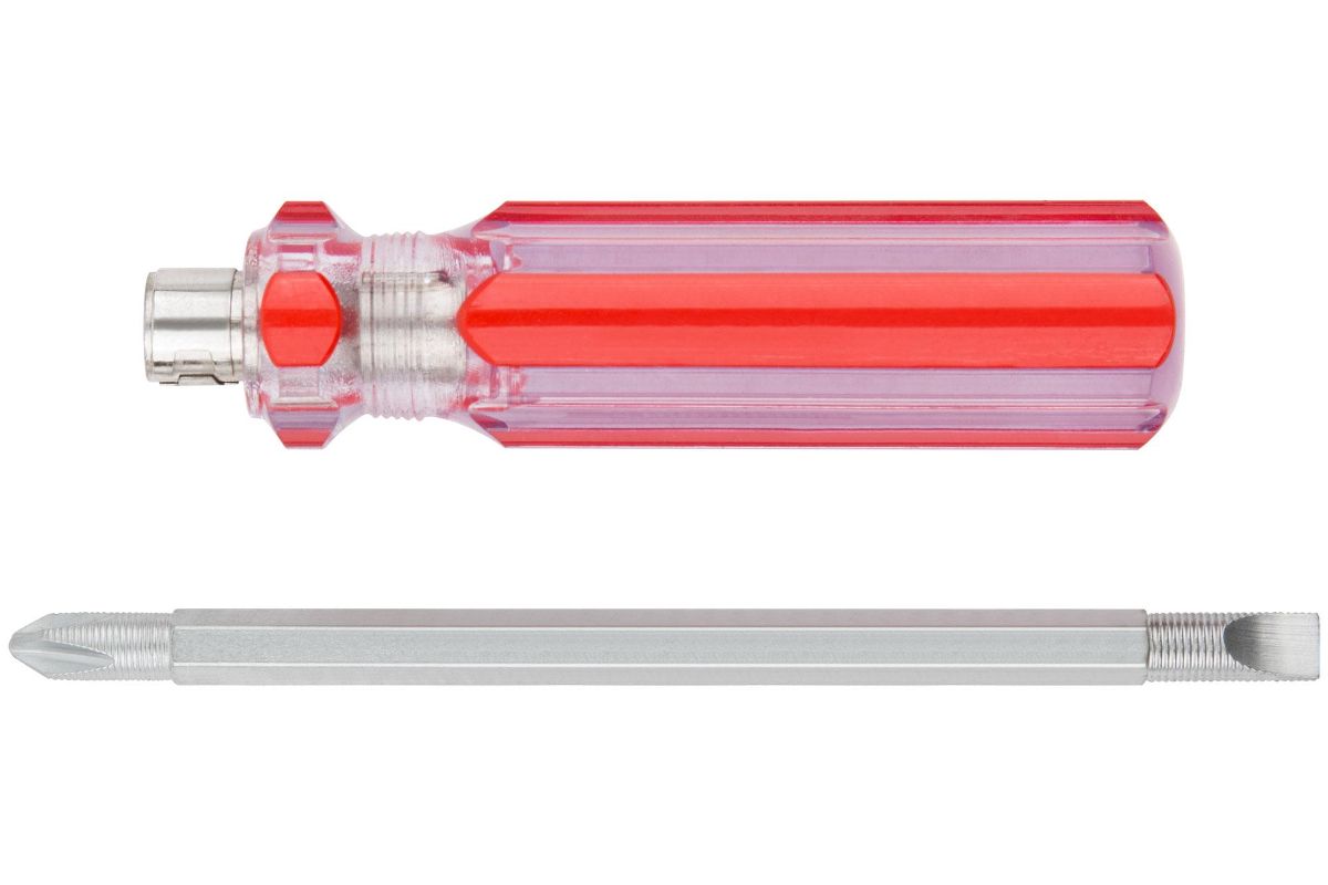 С переставным жалом из инструментальной стали (плоское/крестовое), пластиковая ручка.