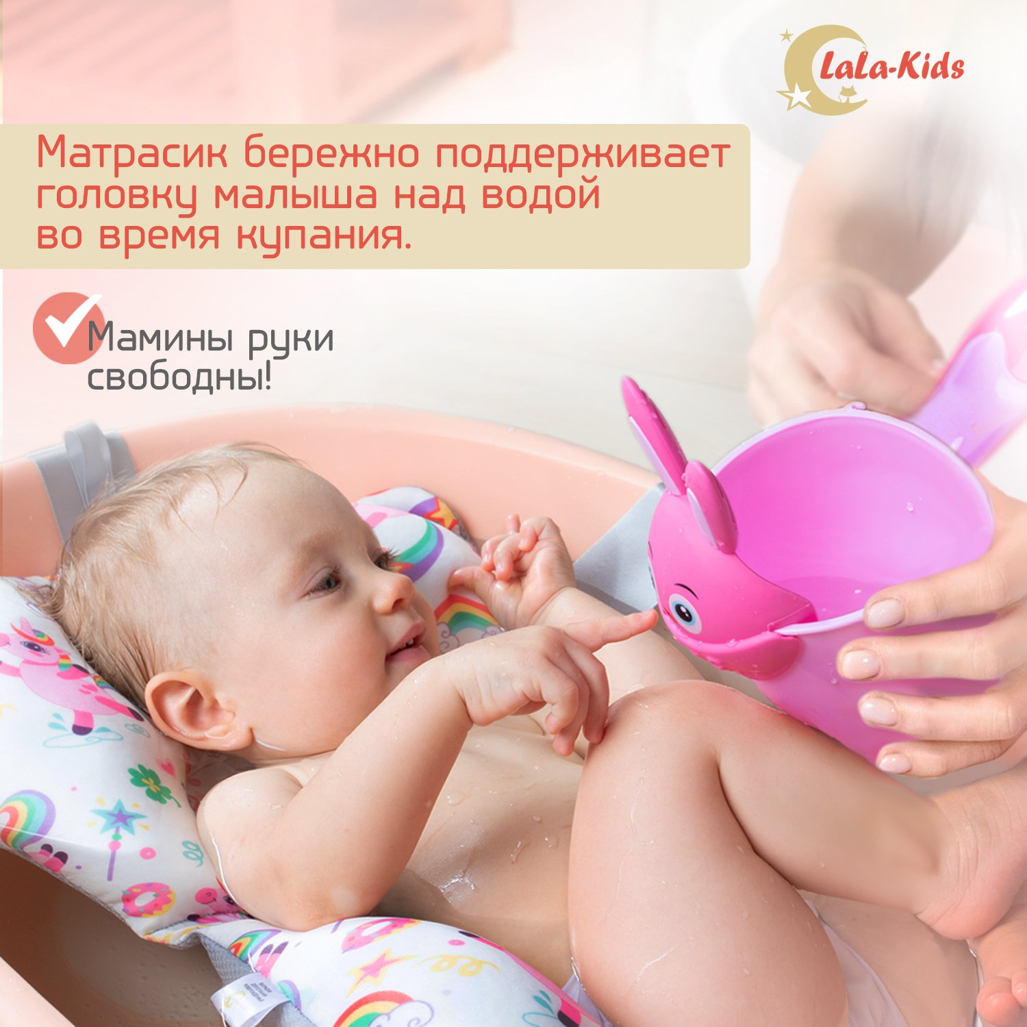 Детская ванночка LaLa-Kids складная с матрасиком для купания новорожденных LLK008020розовый