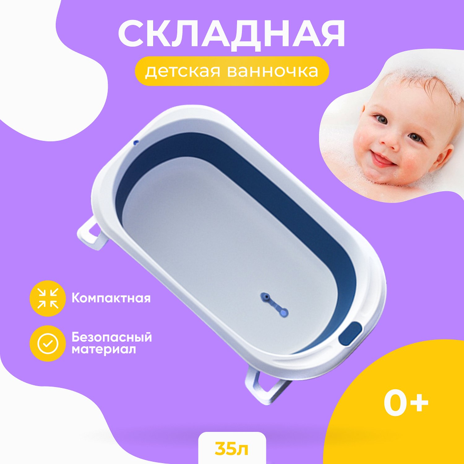 Детская складная ванночка Solmax для купания новорожденных синяя ZV97030
