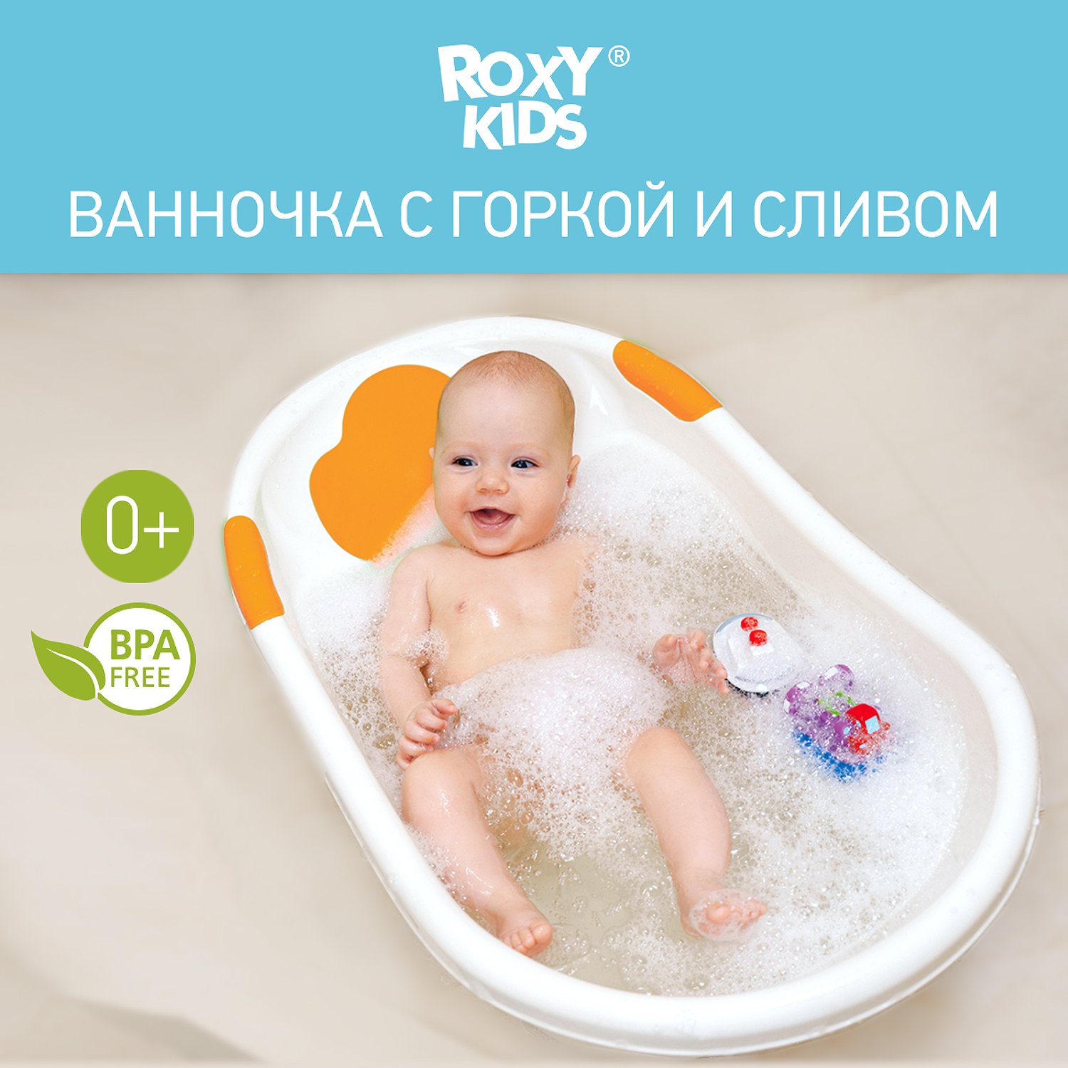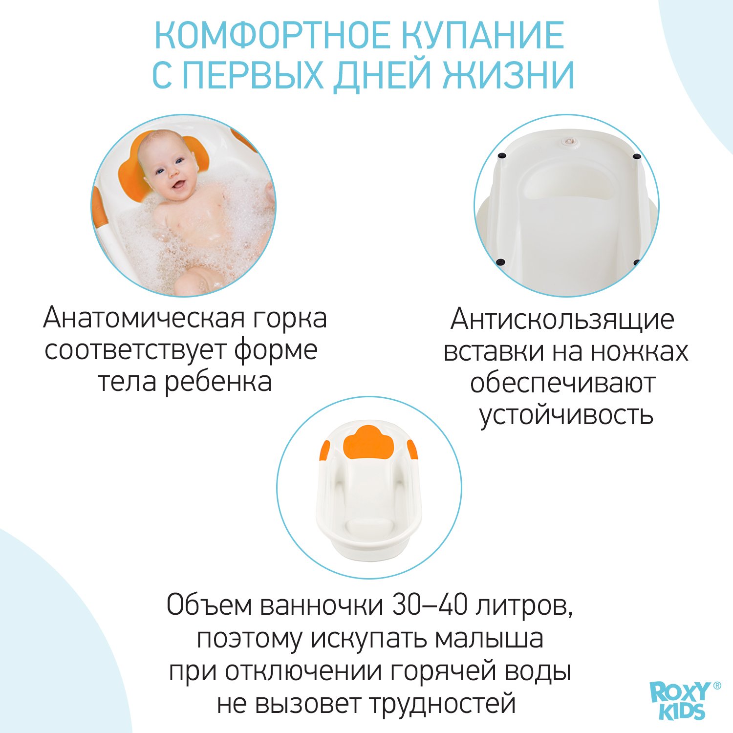 Ванночка для купания малыша ROXY-KIDS с анатомической горкой и сливом цвет оранжевый RBT-W1035-O