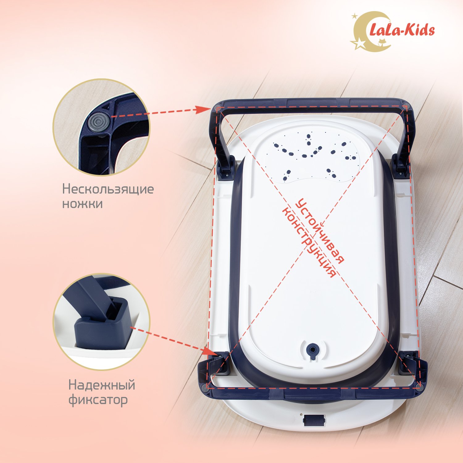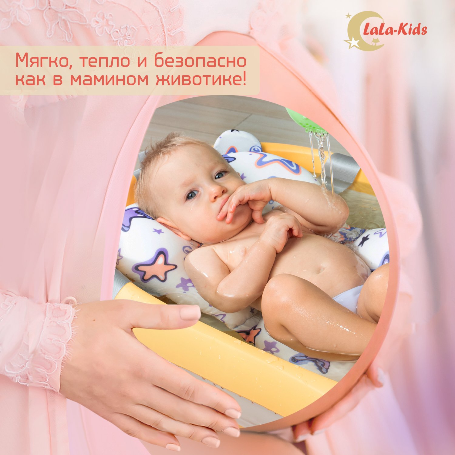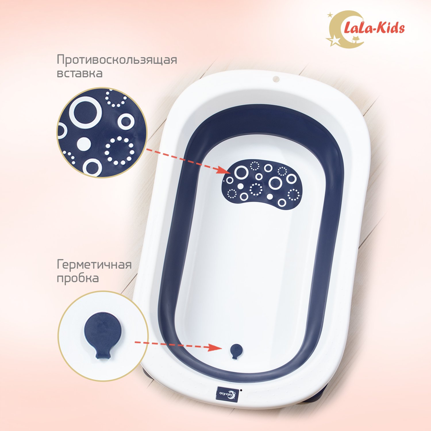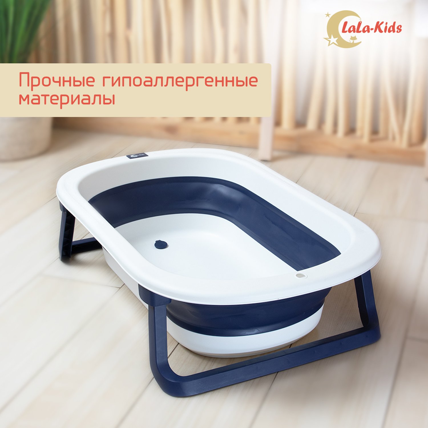 Детская ванночка LaLa-Kids складная с матрасиком для купания новорожденных LLK008020сиреневый