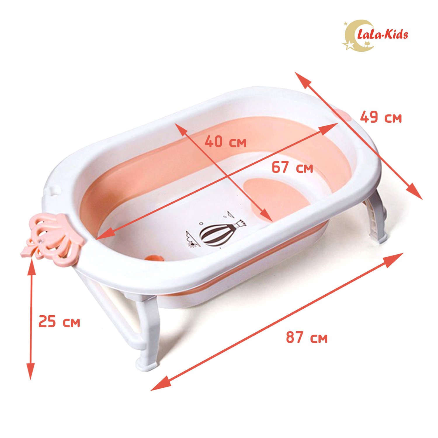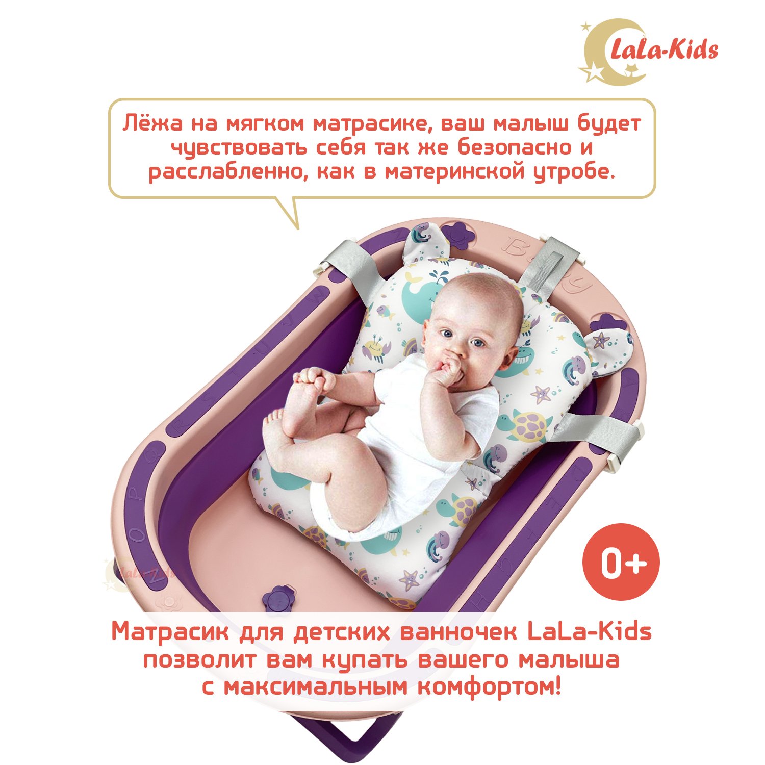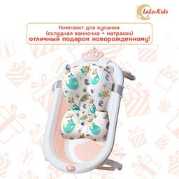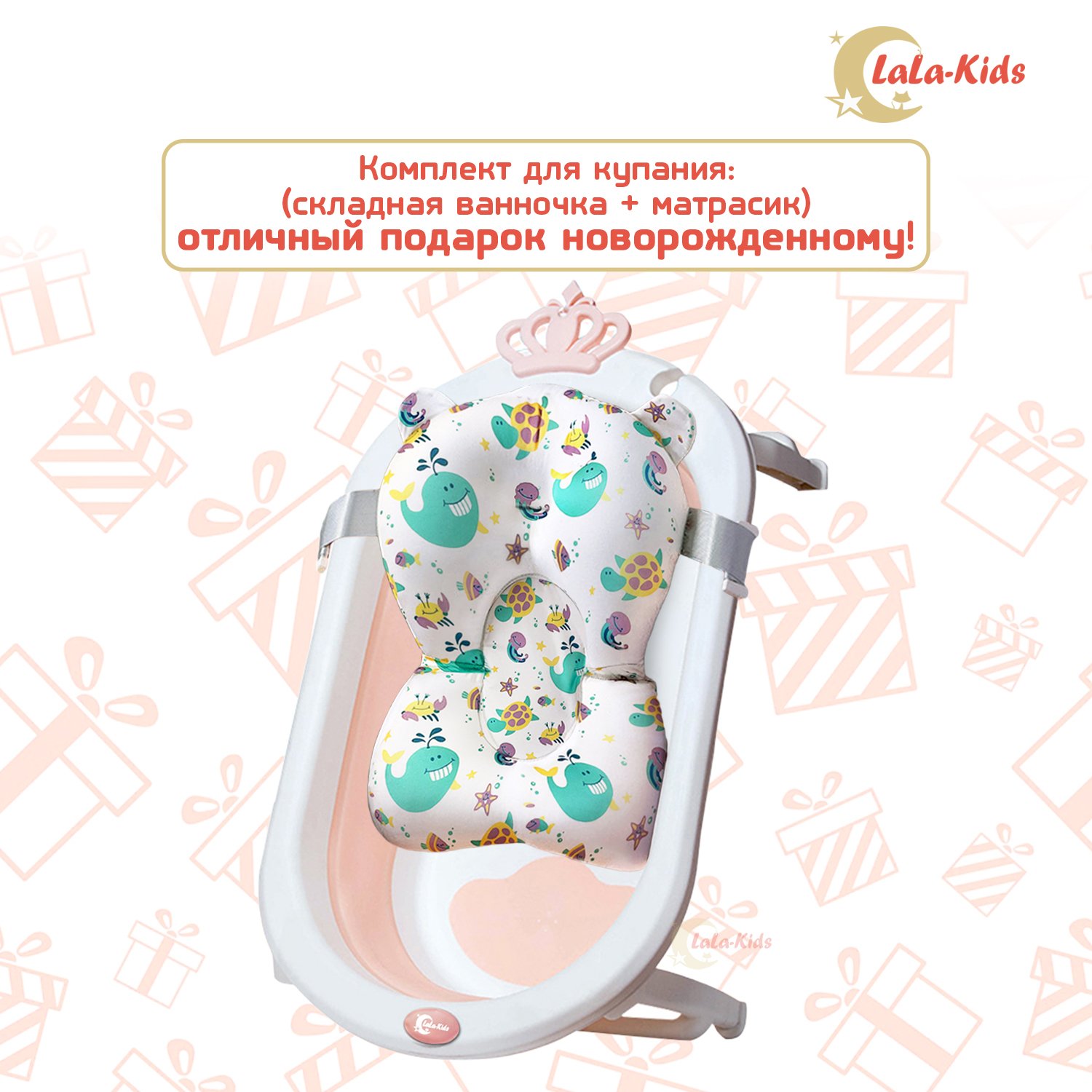 Детская ванночка LaLa-Kids складная с матрасиком для купания новорожденных LLK007120розовый