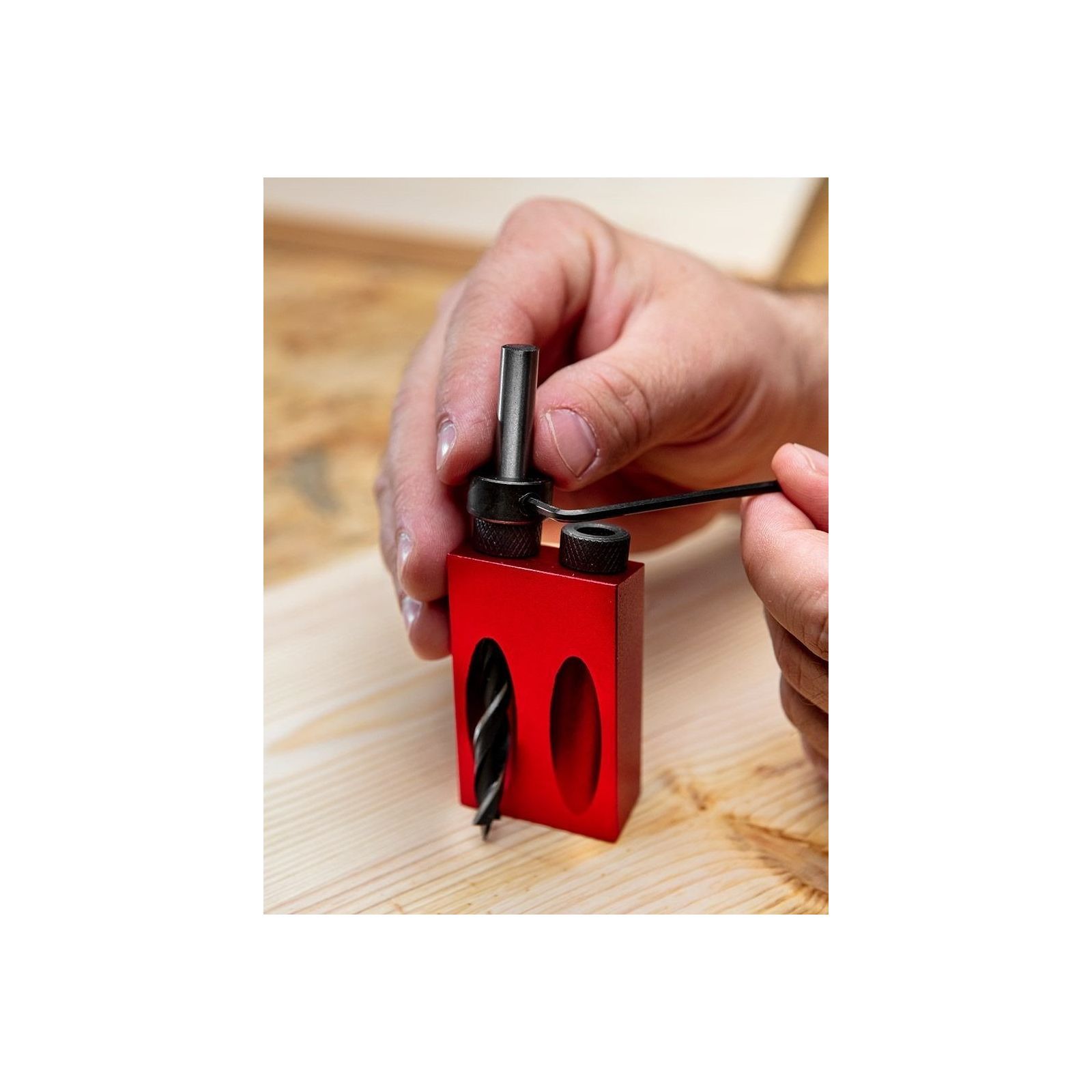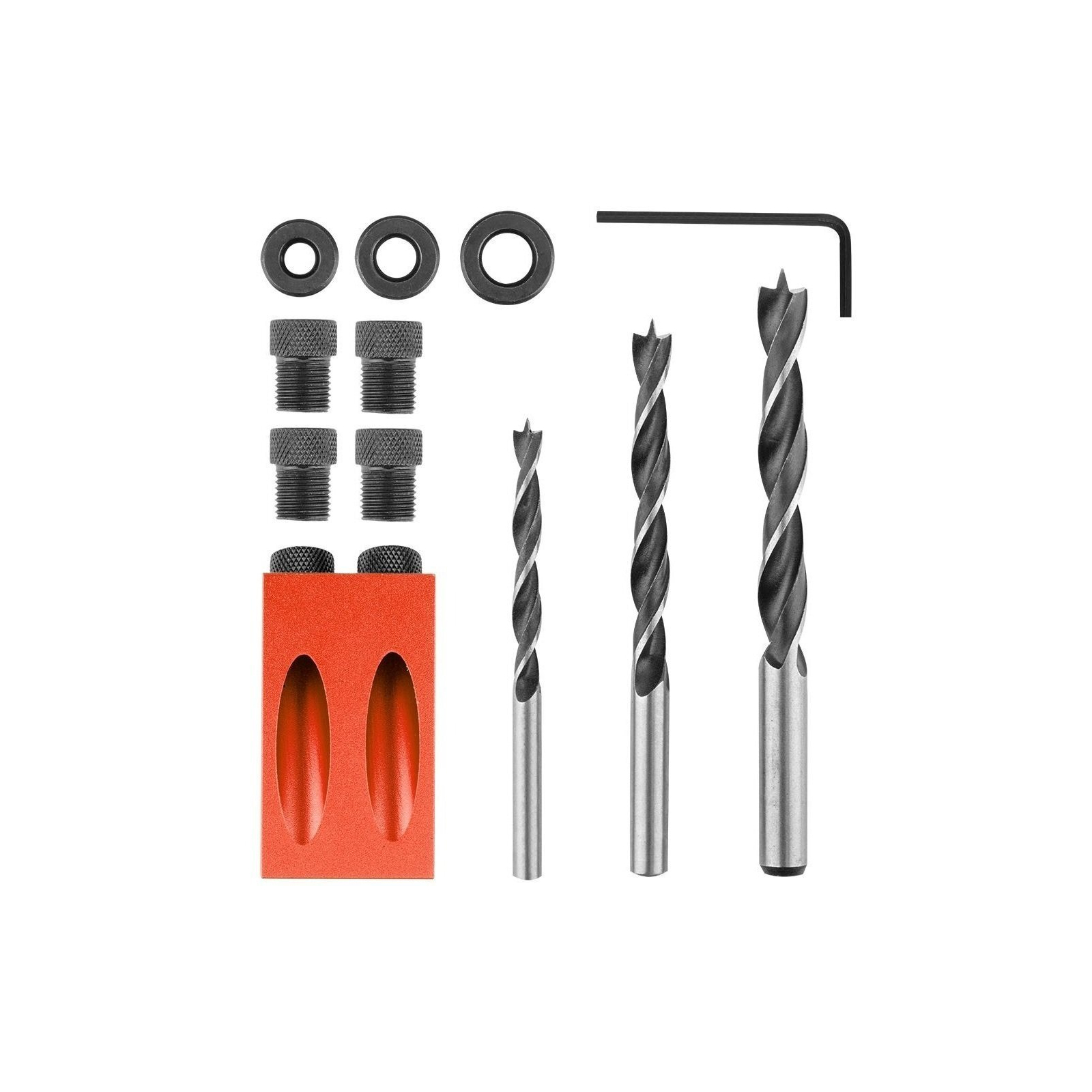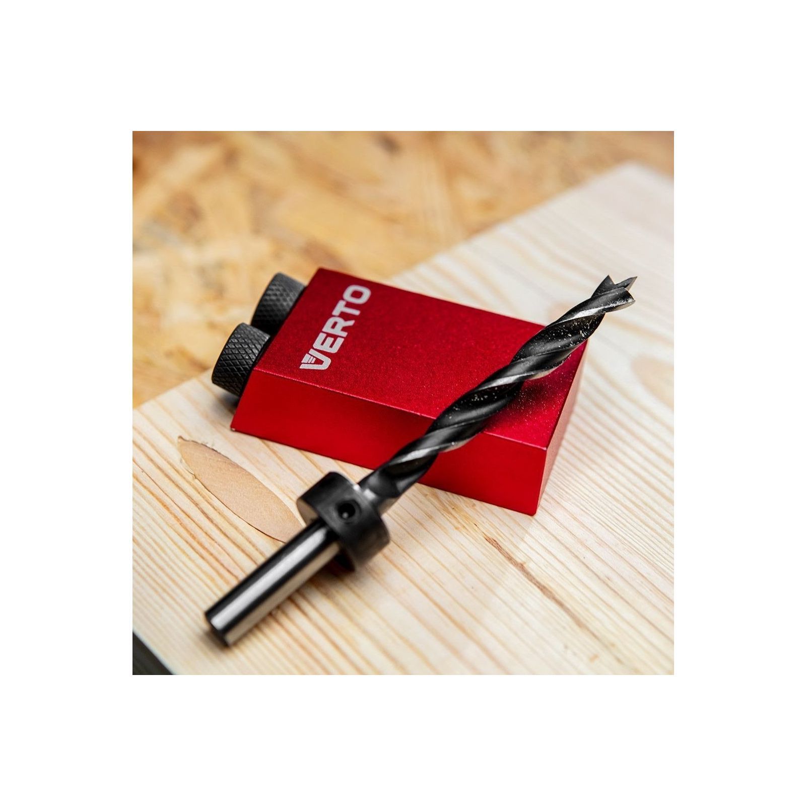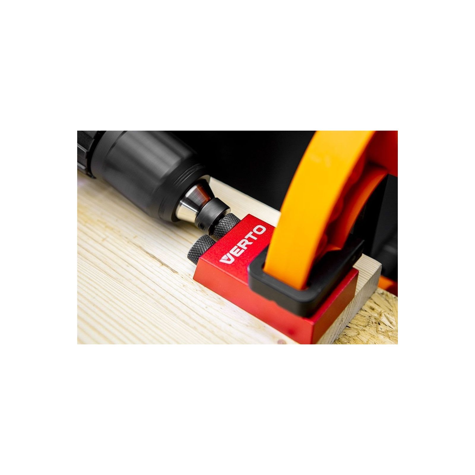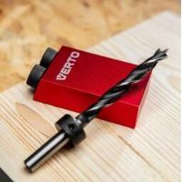 Набір для прихованого з'єднання, 14 елементів 60Х270 VERTO – це набір, призначений для прихованого з'єднання, наприклад двох дощок шляхом свердління в деревині під прямим кутом. Він складається з 14 окремих елементів, серед яких: шаблон для свердління, свердла, накладки та шурупи. Має 3 змінні розміри напрямних та регульовану глибину, завдяки якій можна підганяти параметри під матеріал.