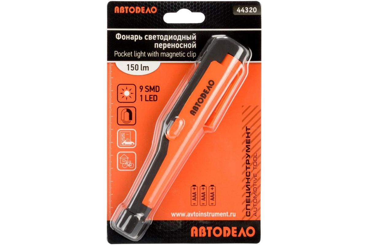 Переноска светодиодная АВТОДЕЛО 44320 компактная с магнитом 9SMD+1SMD, 130Lm