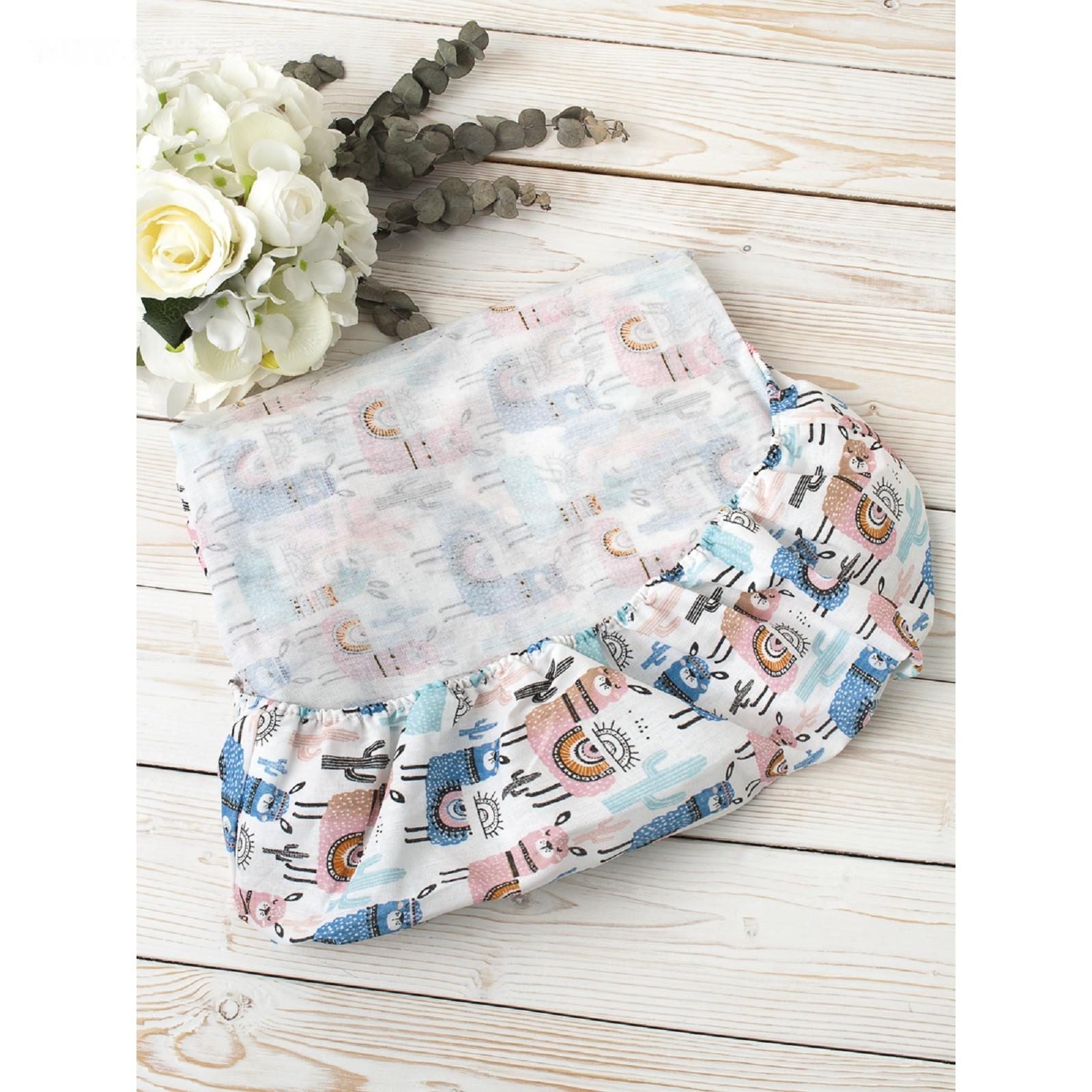 Простыня на резинке, размер 75×125×12 см, бязь, принт ламы