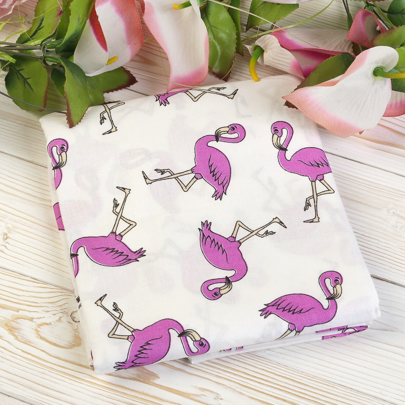 Простыня на резинке, размер 75×75×12 см, поплин, принт фламинго