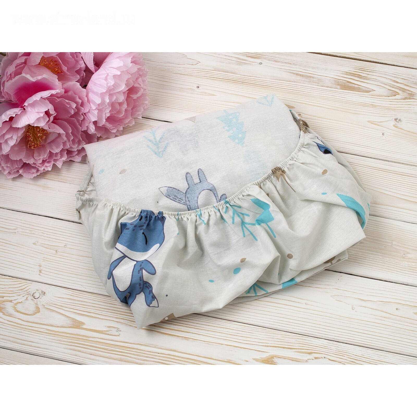 Простыня на резинке, размер 75×125×12 см, бязь, принт в лесу