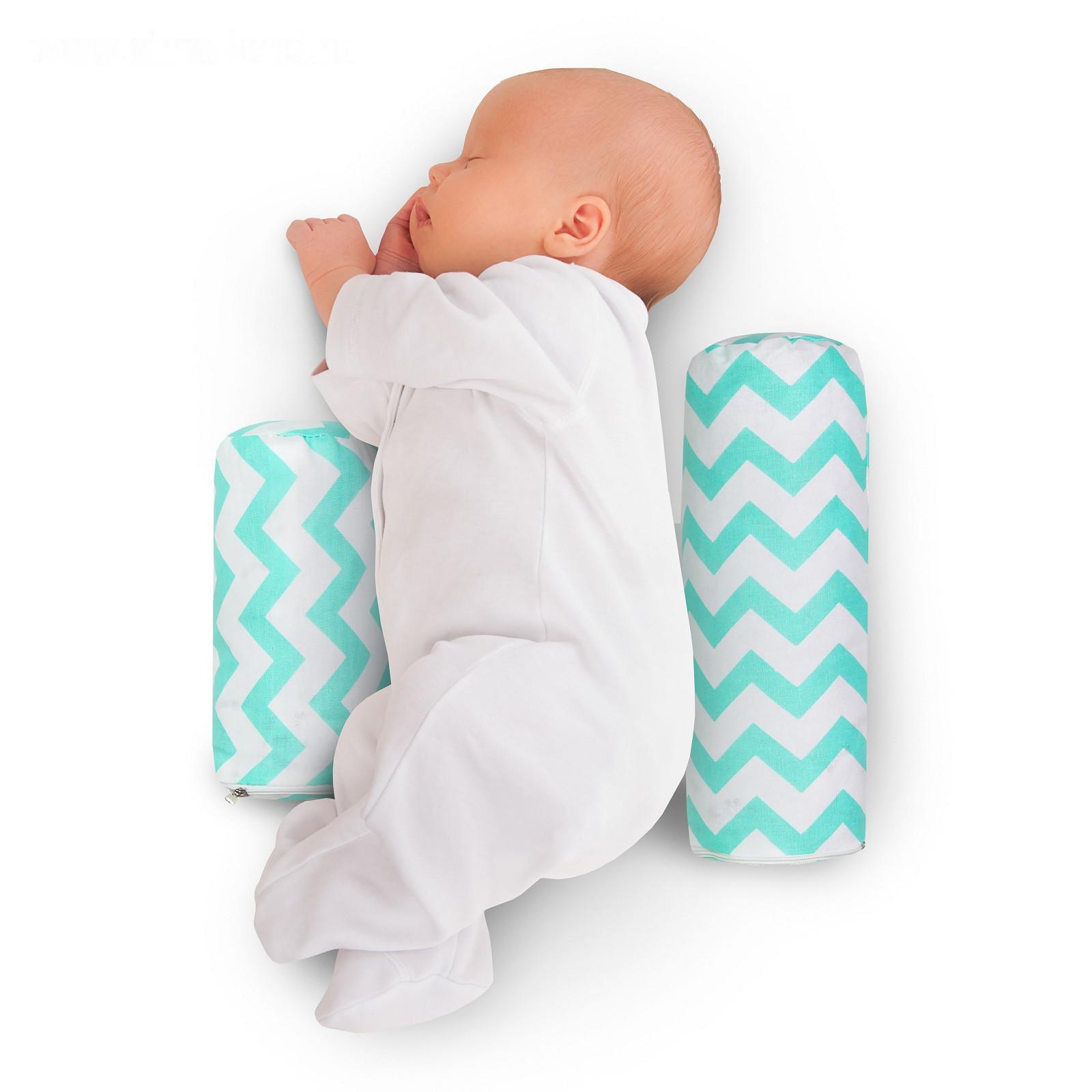 Позиционер — это особая подушка-валик для безопасного сна младенцев на боку. Опираясь спинкой на большой блок, ребёнок спит в естественном положении, а малый блок не даёт ему переворачиваться на животик.