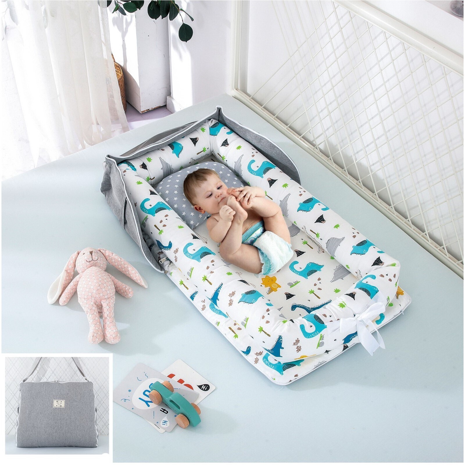 Спальное гнездо «Динозавры», цвет белый