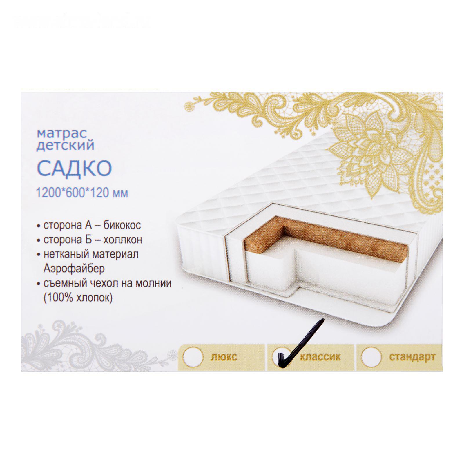 Матрас беспружинный САДКО Классик, размер120х60х11см, цвет МИКС, холлкон/кокос, бязь