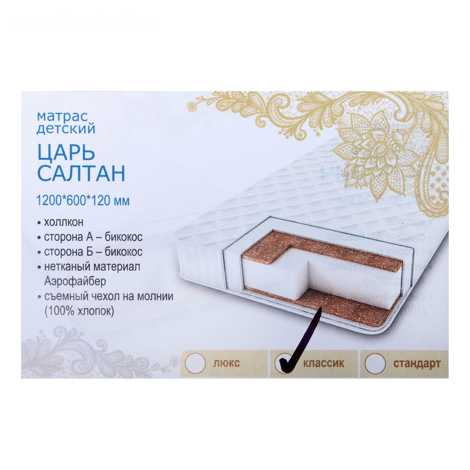 Матрац беспружинный ЦАРЬ САЛТАН классик, 120х60х11см, холлкон/кокос, бязь