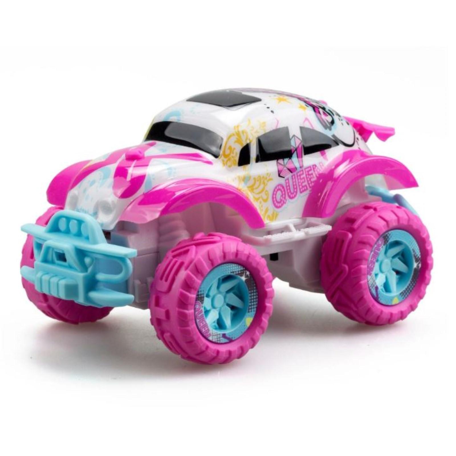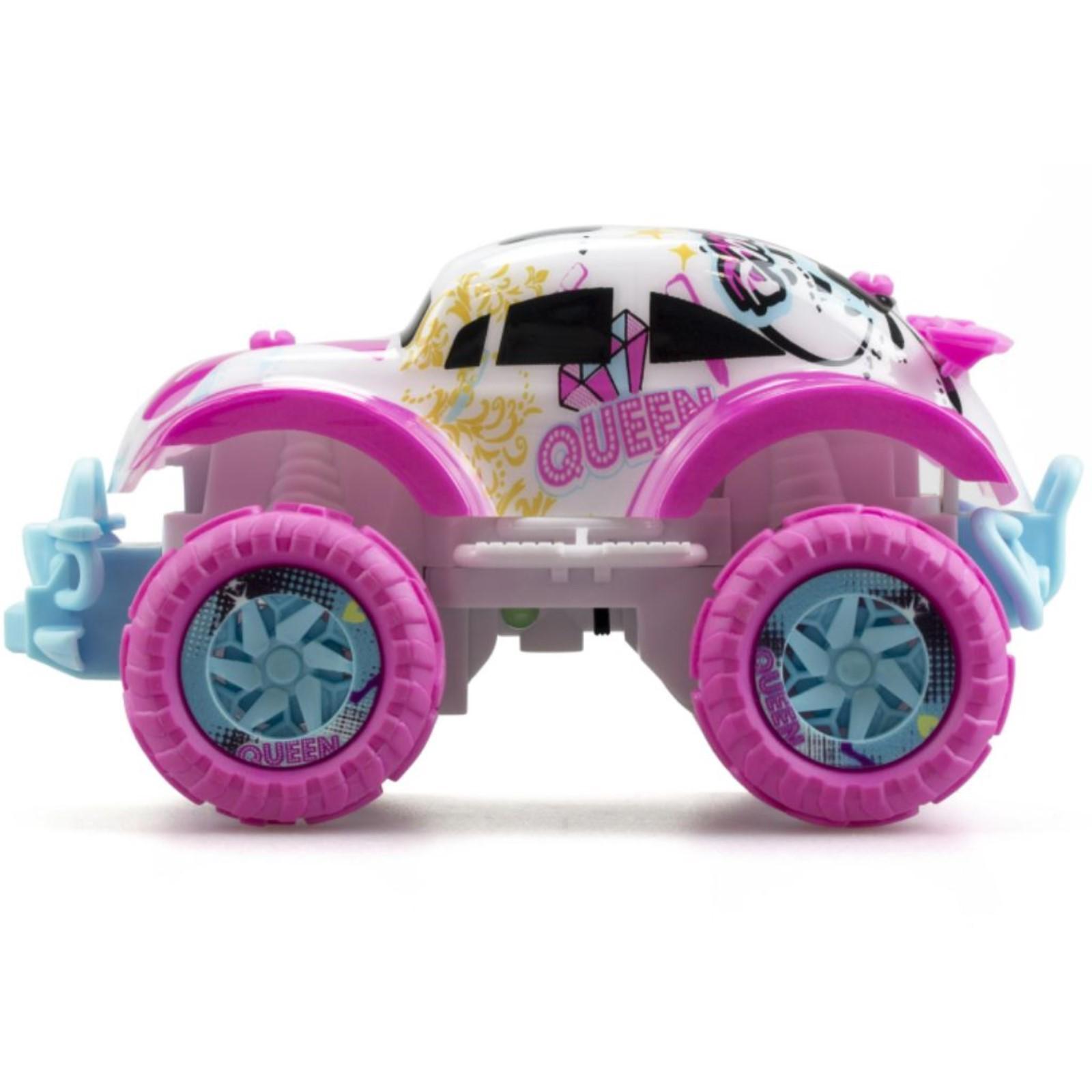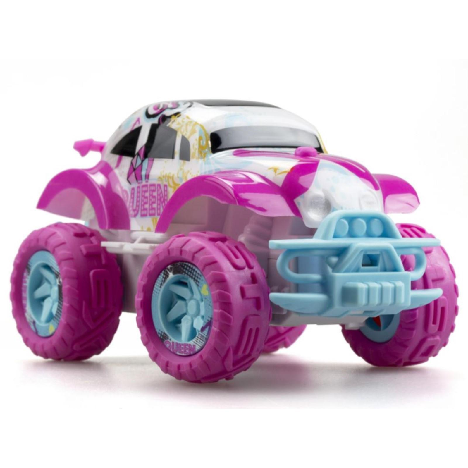 Автомобиль имеет впечатляющий дизайн, яркие наклейки, тёмные окна, большие колёса с протекторами и поражает своими эффектными поворотами и манёврами.