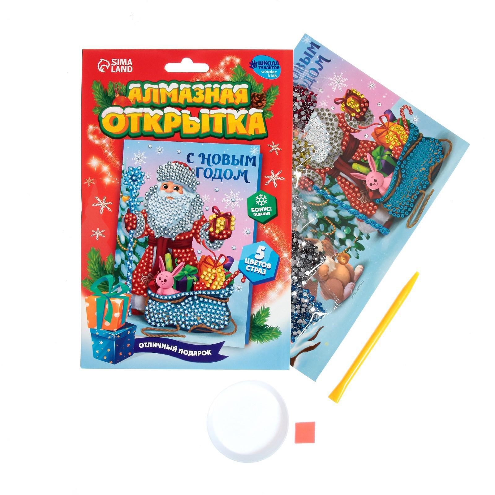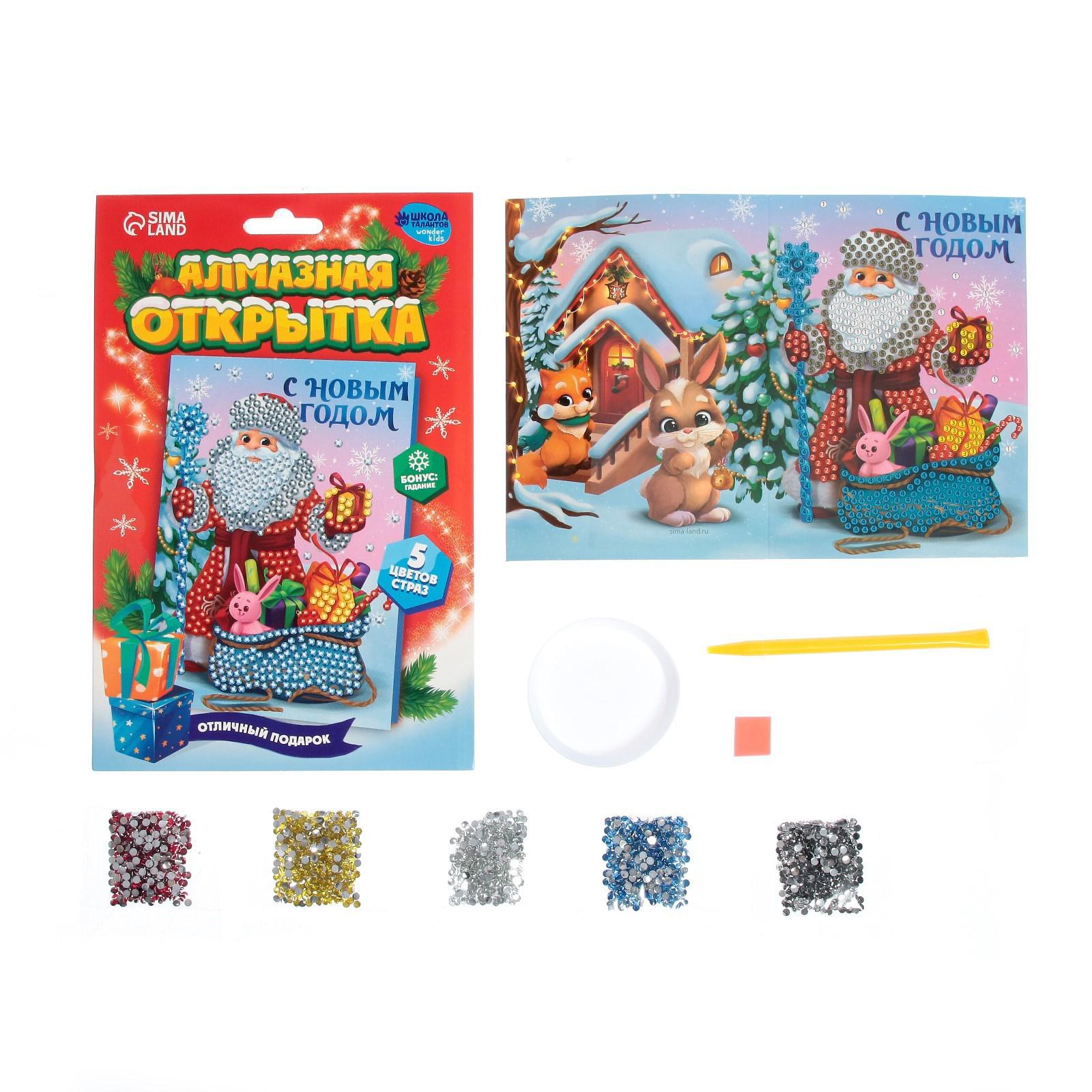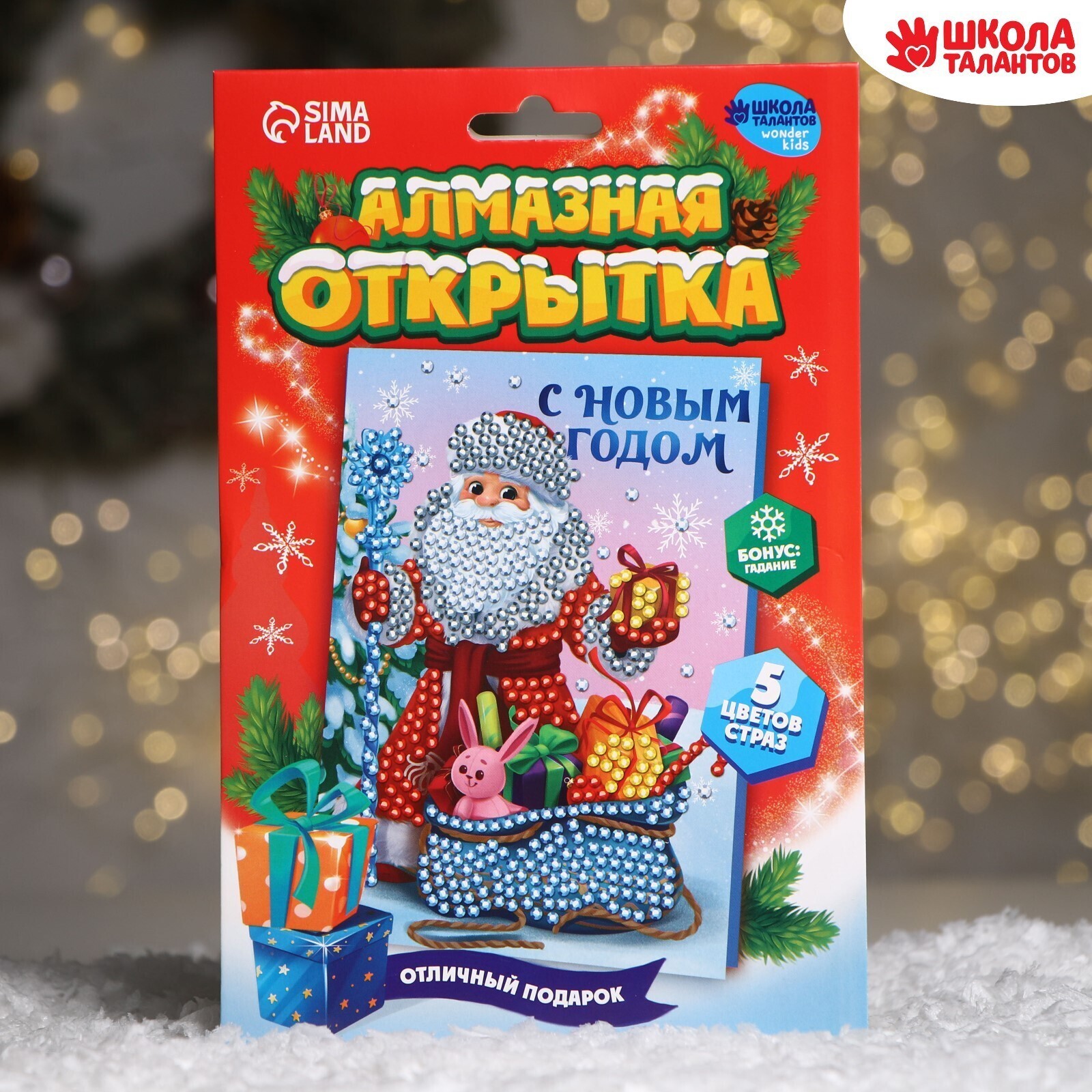 Алмазная вышивка на открытке «Дед Мороз» А5