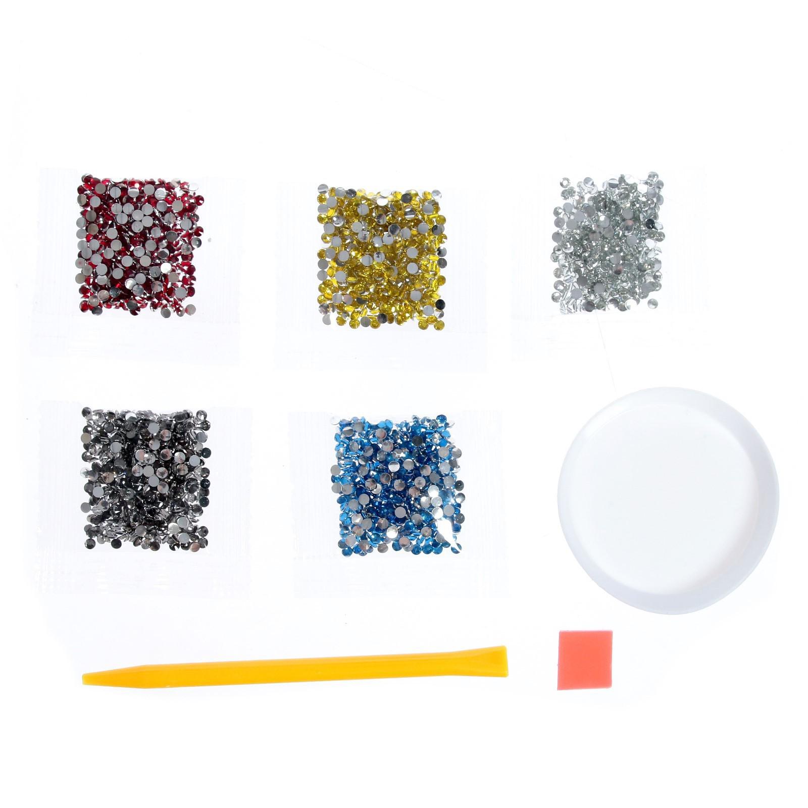 Чтобы получить сверкающую картинку, ребёнку предстоит разложить кристаллики специальным карандашом по схеме. Основа с клеевым покрытием будет надёжно удерживать стразы.