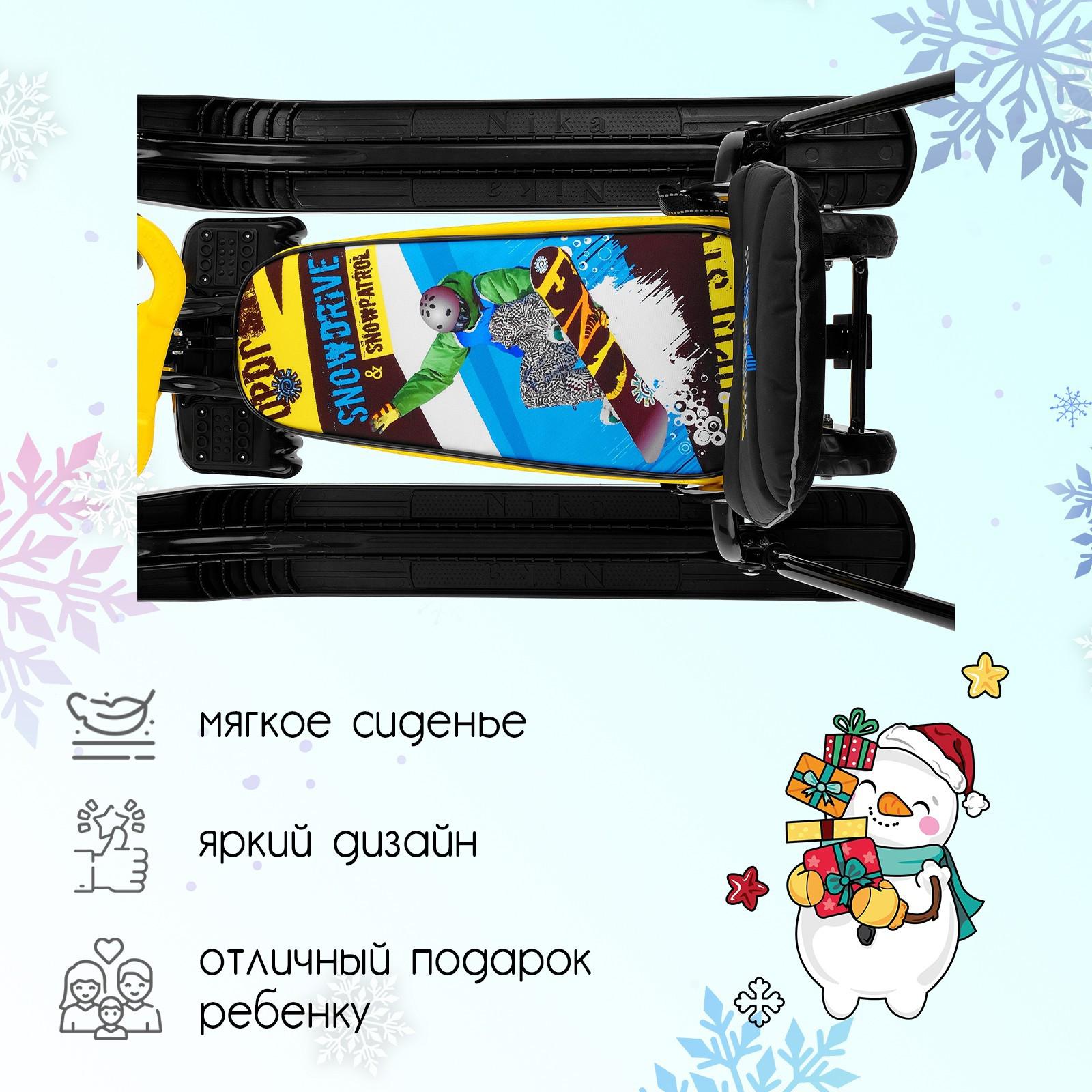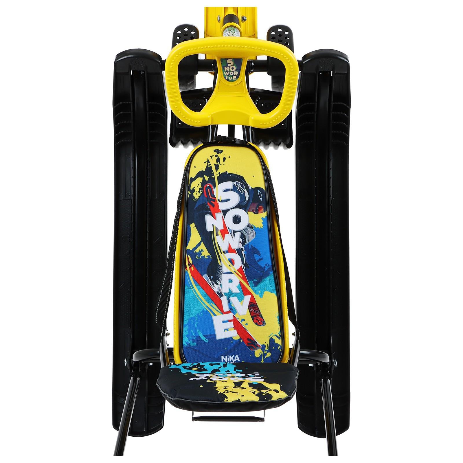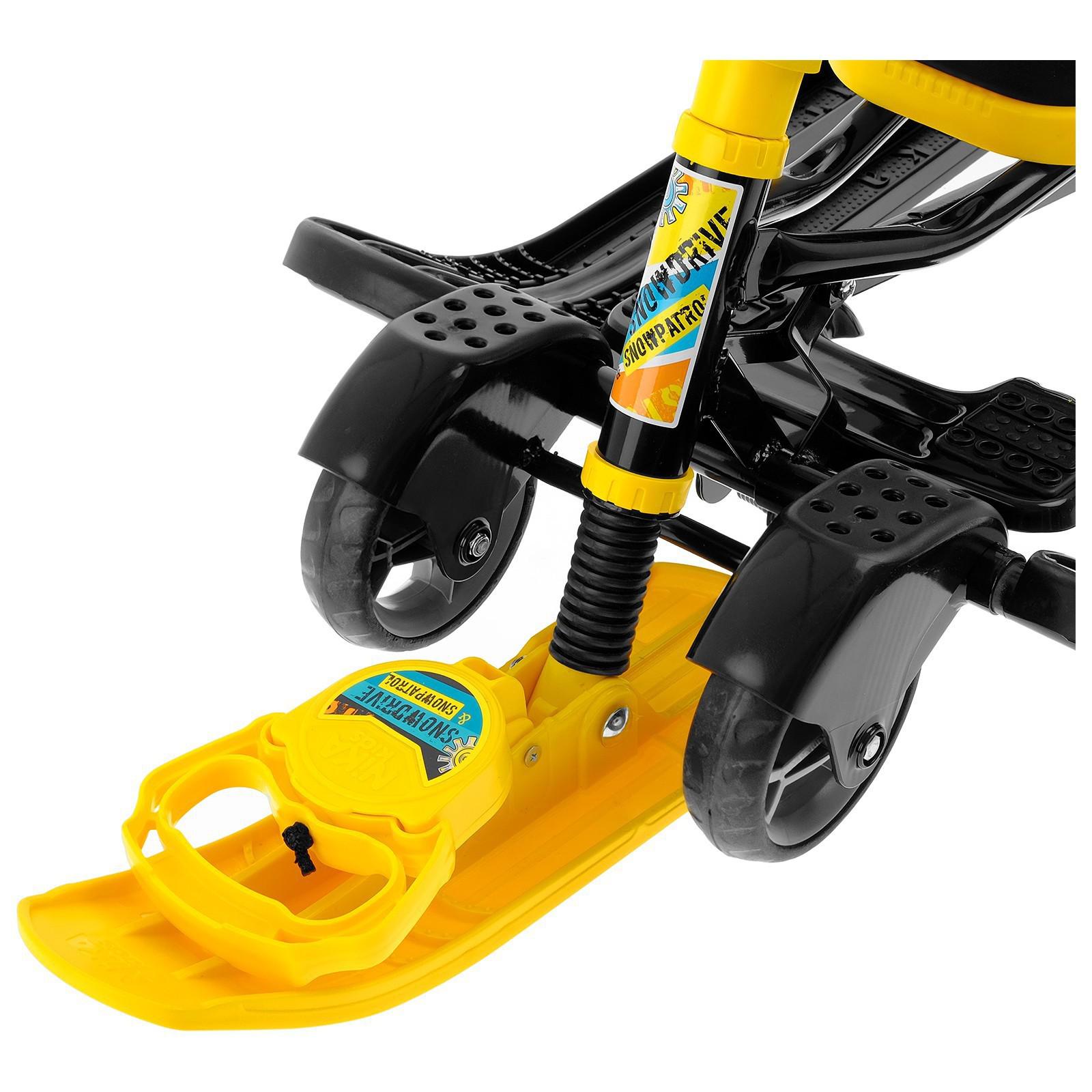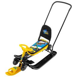 Снегокат с колёсами «Тимка спорт 6» Winter sport, ТС6/WS, с родительской ручкой, со спинкой и ремнём безопасности, цвет жёлтый/чёрный