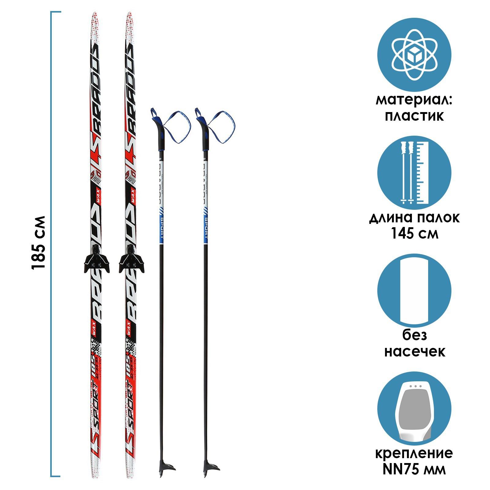 Комплект лыжный: пластиковые лыжи 185 см без насечек, стеклопластиковые палки 145 см, крепления NN75 мм «БРЕНД ЦСТ»
