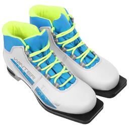 Ботинки лыжные женские TREK Winter 3, NN75, искусственная кожа, цвет белый/голубой/лайм-неон, лого серебристый, размер 31