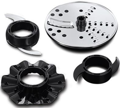 Ножі з нержавіючої сталі та великий вибір насадок роблять кухонний комбайн Matte Black приладом номер один на вашій кухні. У комплекті комбайна є основна чаша, корисною ємністю 1.5 літра, а також чаша блендера ємністю 1.5 літра для приготування смузі, супів-пюре, соусів, фруктових та овочевих пюре для дитячого харчування.
