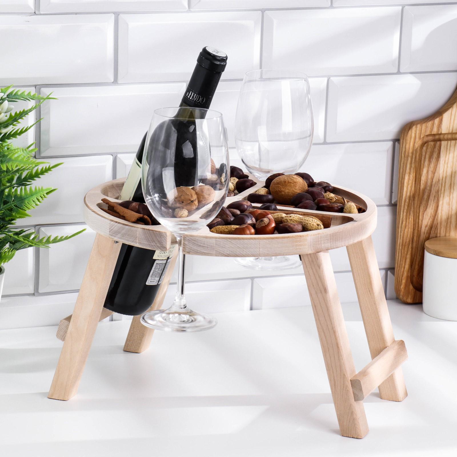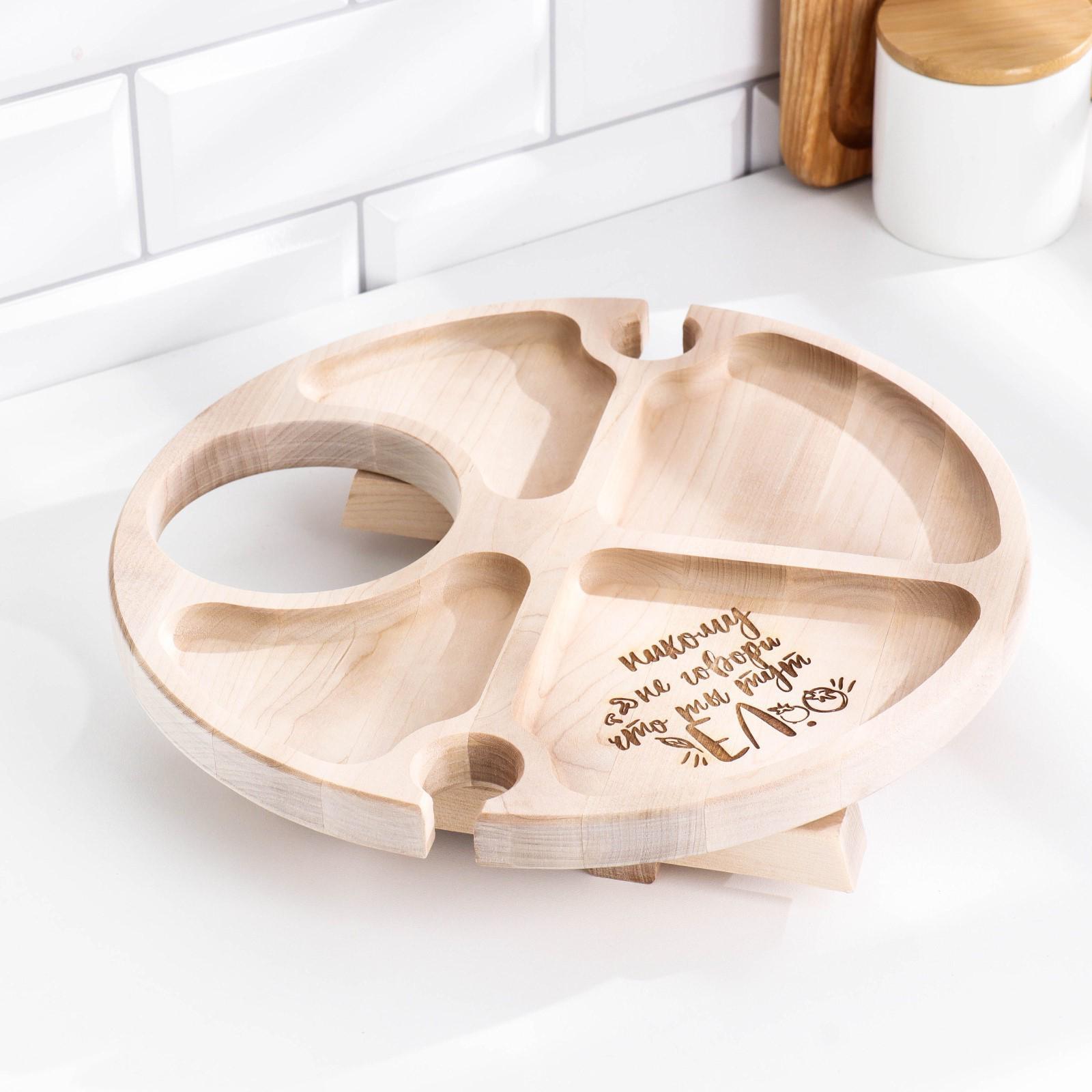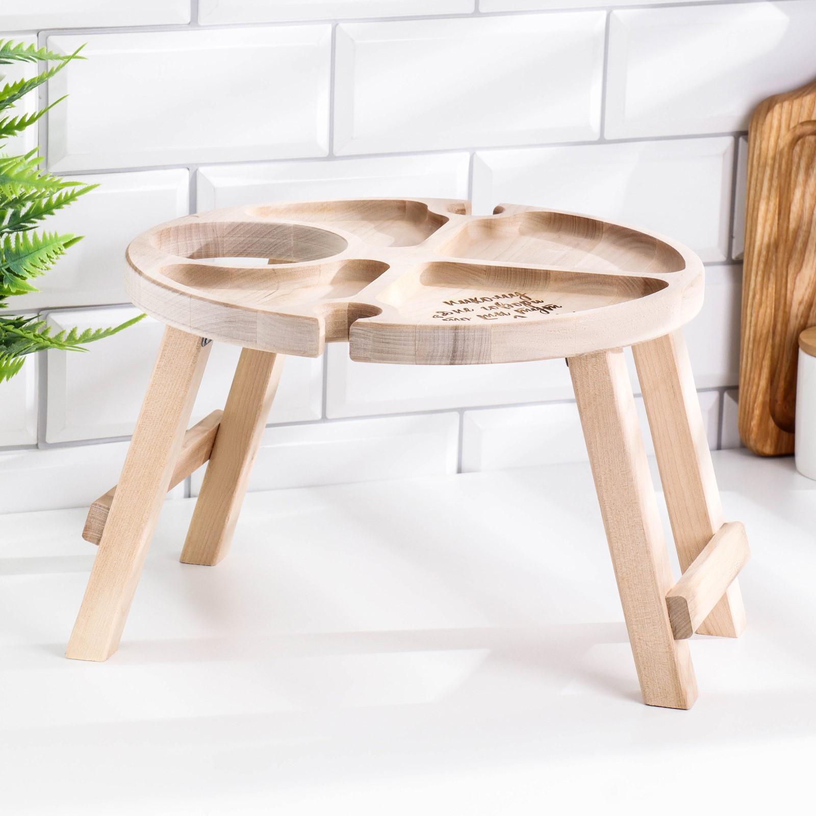 Столик - поднос с менажницей и складными ножками "Никому не говори" D=30х2,8 см, береза