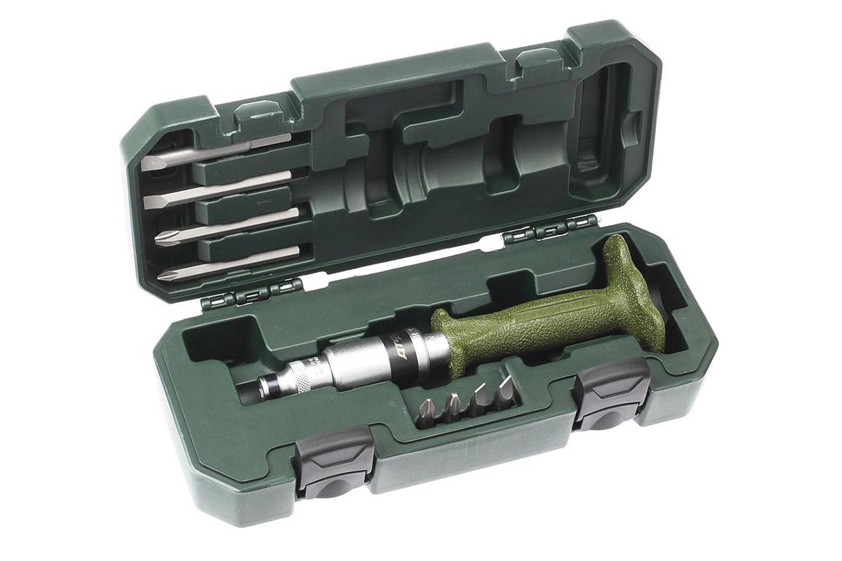 Отвертка ударно-поворотная Дело Техники 766918 позволяет преобразовать энергию удара молотком по ее затыльнику в поворотное усилие для заворачивания / отворачивания крепежа. Применяется для создания больших крутящих моментов которые не могут быть созданы вручную. Также отвертка может использоваться с торцовыми головками 1/2”.