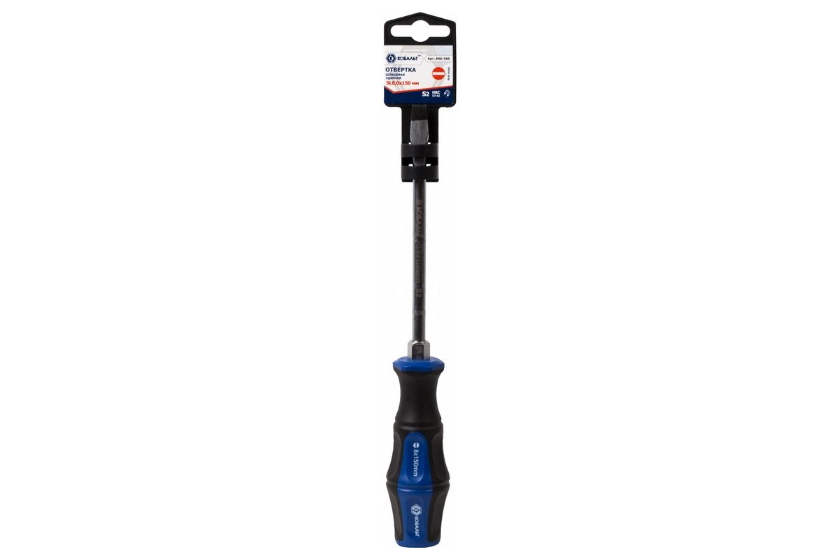 Отвертка КОБАЛЬТ 646-560 ударная Ultra Grip SL 8,0x150мм S2, двухкомпонентная рукоятка 1шт подвес
