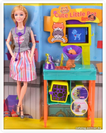 - Комплектация 1 кукла, 1 щенок, 1 процедурный стол, 1 переноска для животных, 5 аксессуаров