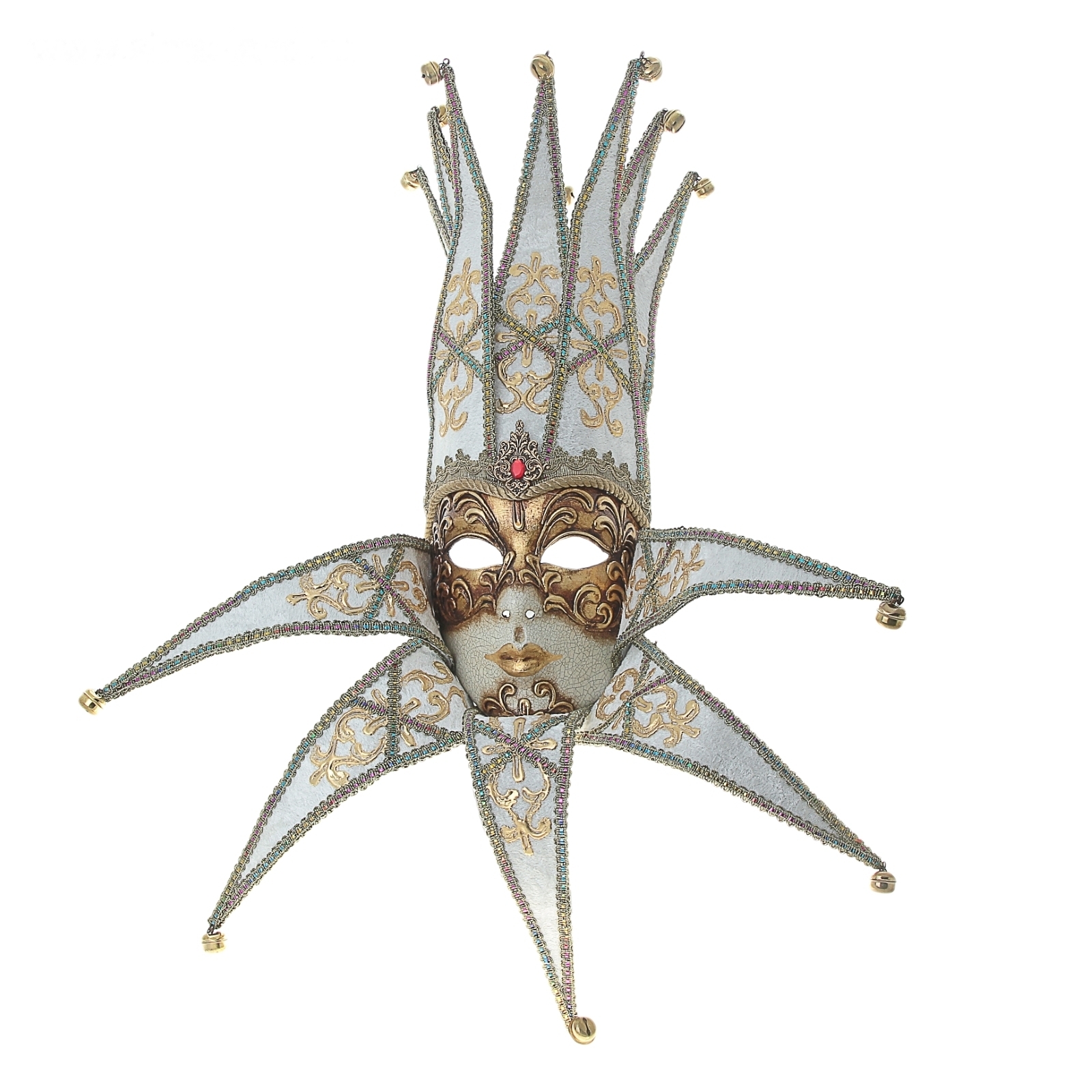 Если Вам хочется приобрести для себя или в подарок близкому человеку настоящую венецианскую маску, вовсе не обязательно ехать за ней в Италию! Взгляните на эту: выполненная вручную в итальянской мастерской BlueMoon Venice, она завораживает пышным декором. Затейливые узоры, многоцветная тесьма, крошечные золотистые бубенчики… Маска Jolly Velluto Donna White C, Венеция, 17 × 35 × 57 см 17 × 35 × 57 см – воплощение духа неповторимого Венецианского карнавала с его пышностью и многоликостью. Вы можете заказать ее в нашем интернет-магазине прямо сейчас.