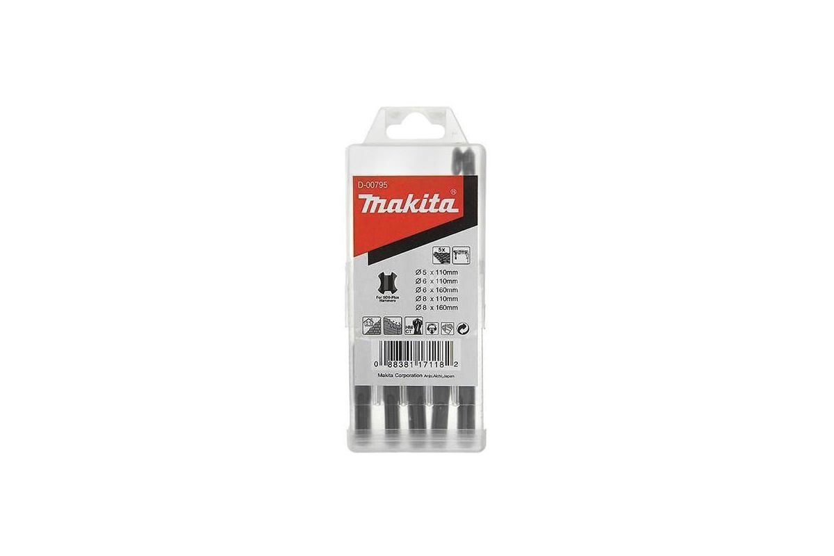 Набор буров MAKITA SDS+ D-00795 5шт.: 5,6,8 X 110мм, 6,8 X 160мм 5, 6, 8 х 110 мм 6, 8 х 160 мм